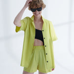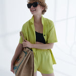 Sezonun favorisi Karmen Şort, yastık yeşili tonuyla yaz gardırobunuza taze ve modern bir dokunuş katıyor. Elastik bel bandı ve rahat kesimi sayesinde gün boyu konfor sunarken, hafif yapısıyla sıcak havaların vazgeçilmezi olmaya aday. Sade bir tişört, bluz veya gömlekle kolayca kombinlenerek günlük stilinize şıklık katar.