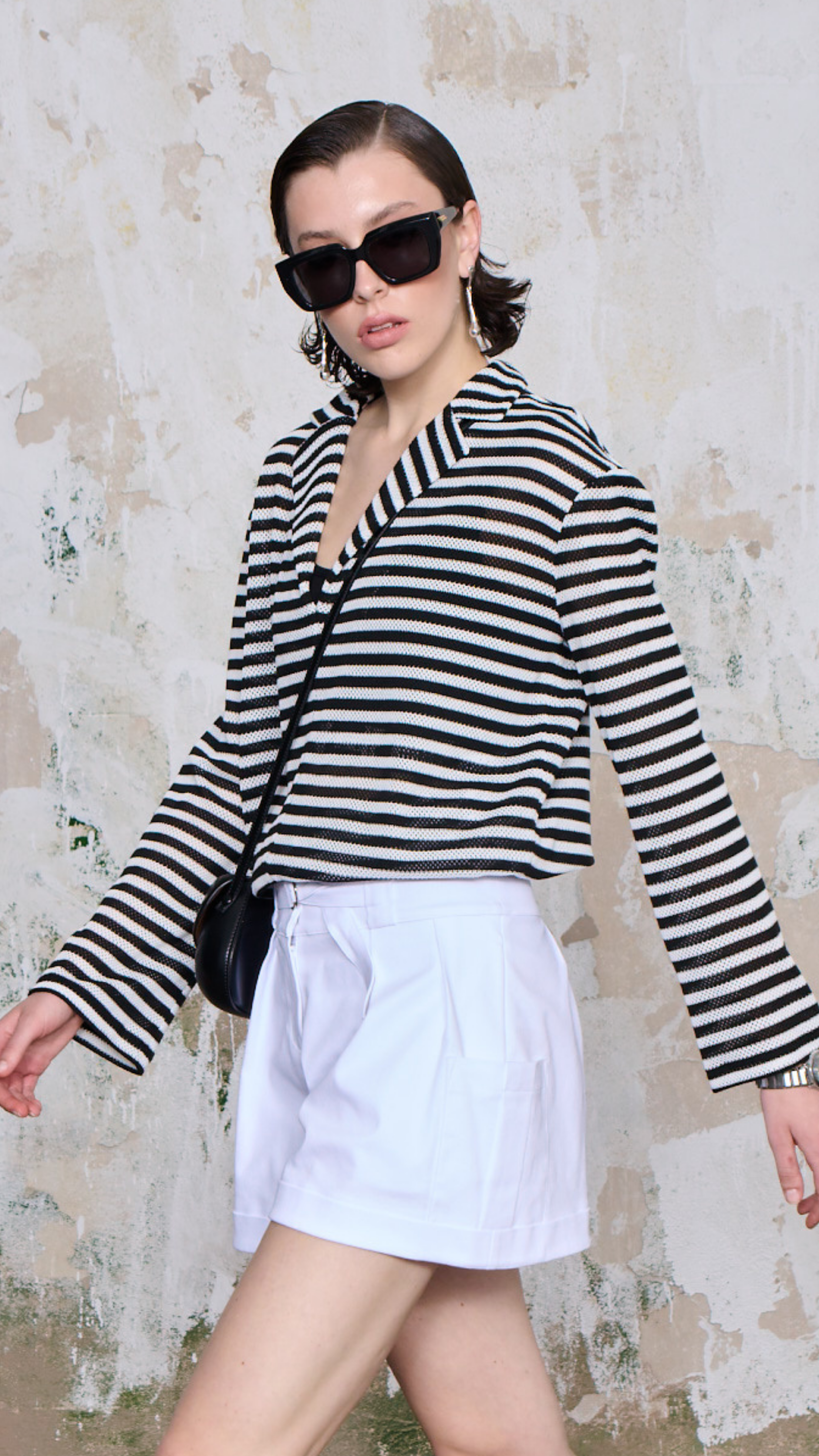 WhatIfBrand'ın Freya Bluz'u, sade zarafeti ve çok yönlü kullanımıyla zamansız bir stil sunuyor. Klasik siyah-beyaz çizgileri sayesinde her mevsime uyum sağlarken, yumuşak ve dayanıklı örme kumaşı gün boyu konfor sunar. Modern kesim ve V yaka detayıyla hem şehir temposuna ayak uydurur hem de şık bir görünüm kazandırır. Günlük kombinlerden ofis stiline kadar her anınıza ait olacak bir parça.