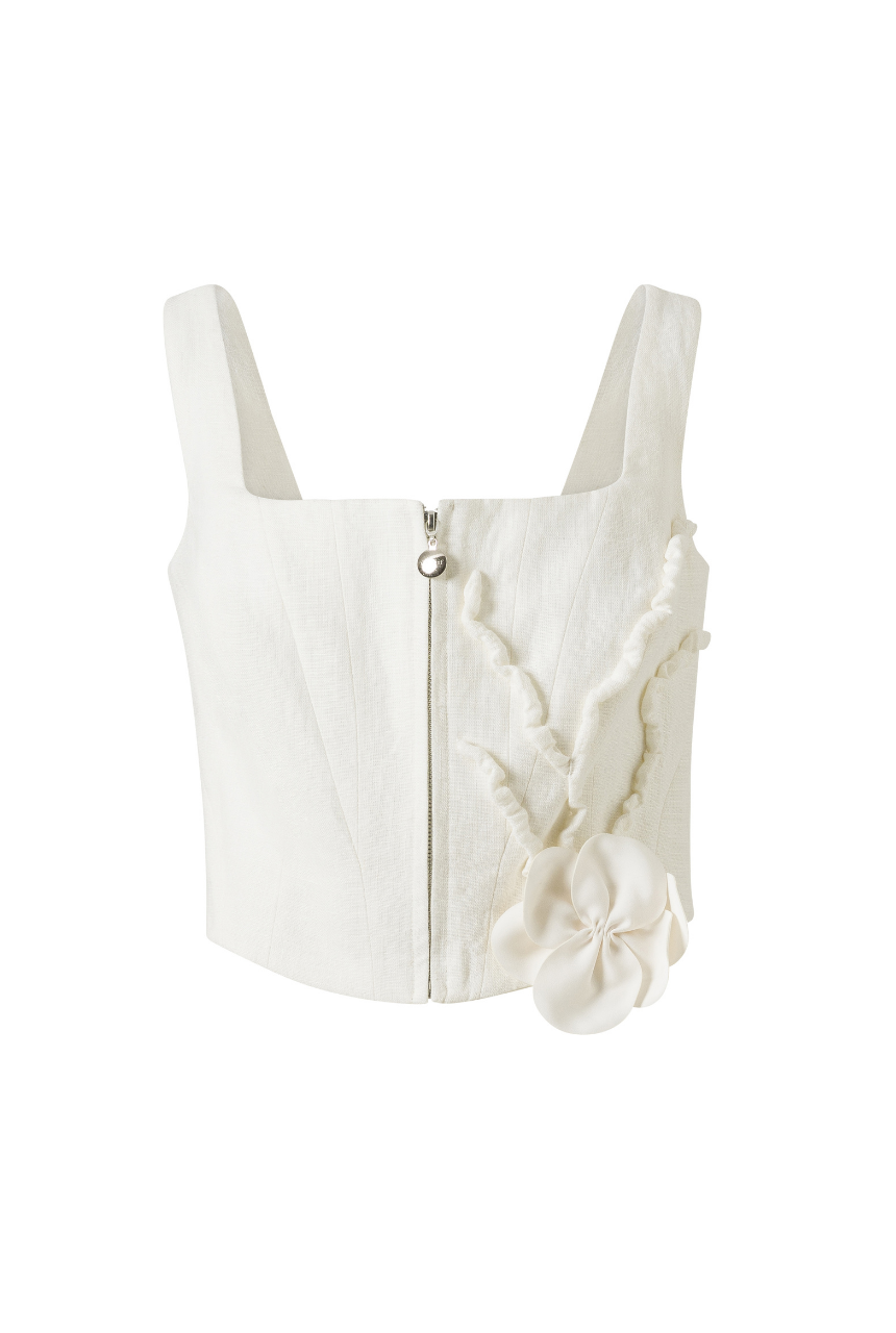 Ivory Bluz Korseli, %100 Keten Aplikasyonlu