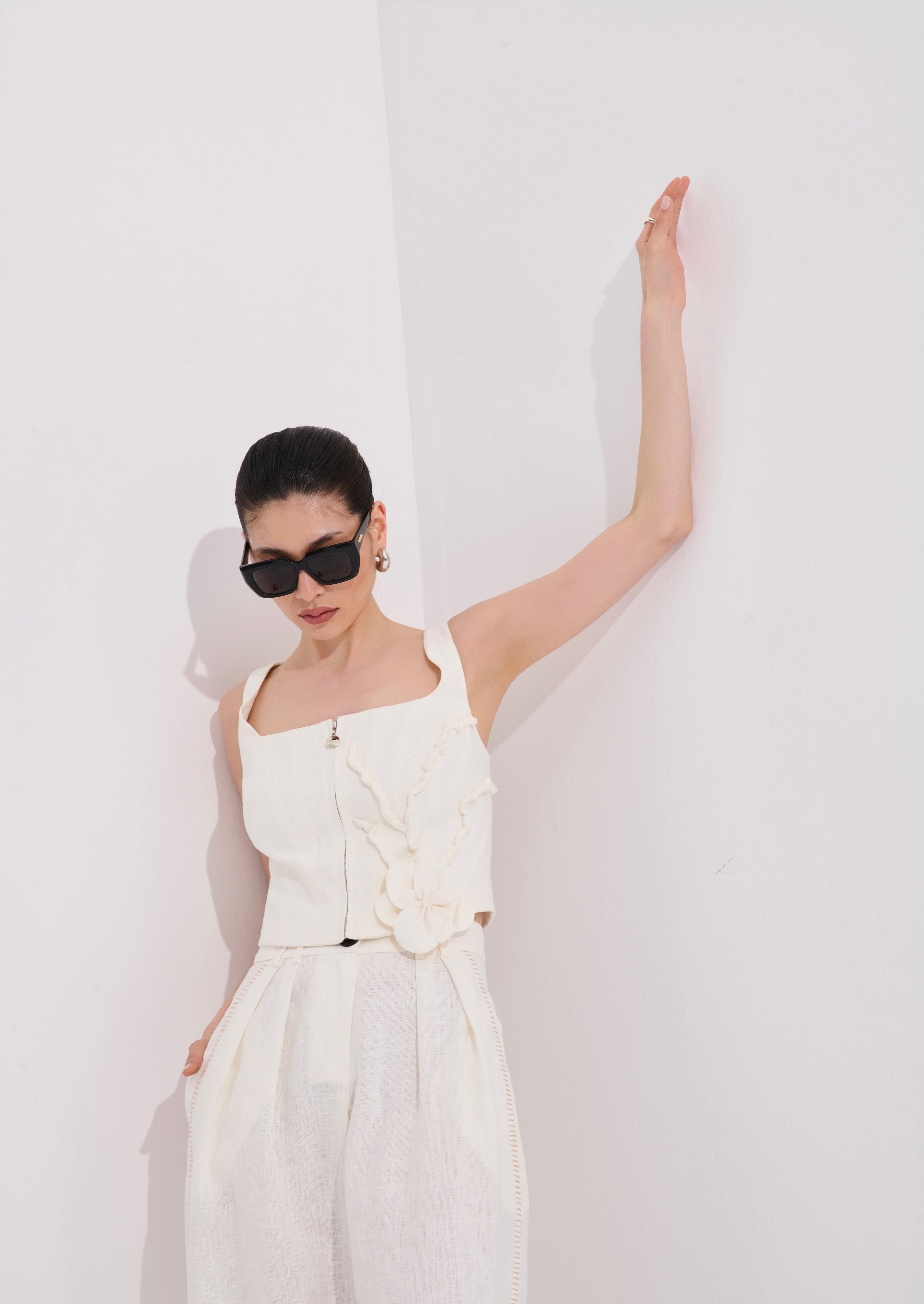 Gardırobunuza dayanıklı ve esnek bir dokunuş katmak için tasarlanan bu özel keten bluz feminen detaylarla modern formu bir araya getirir