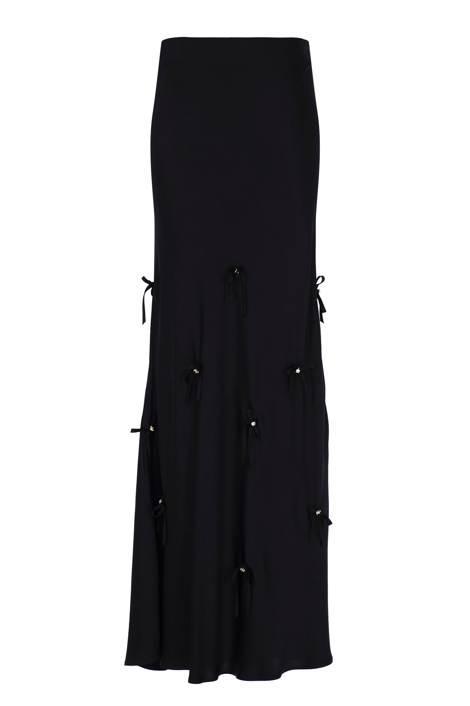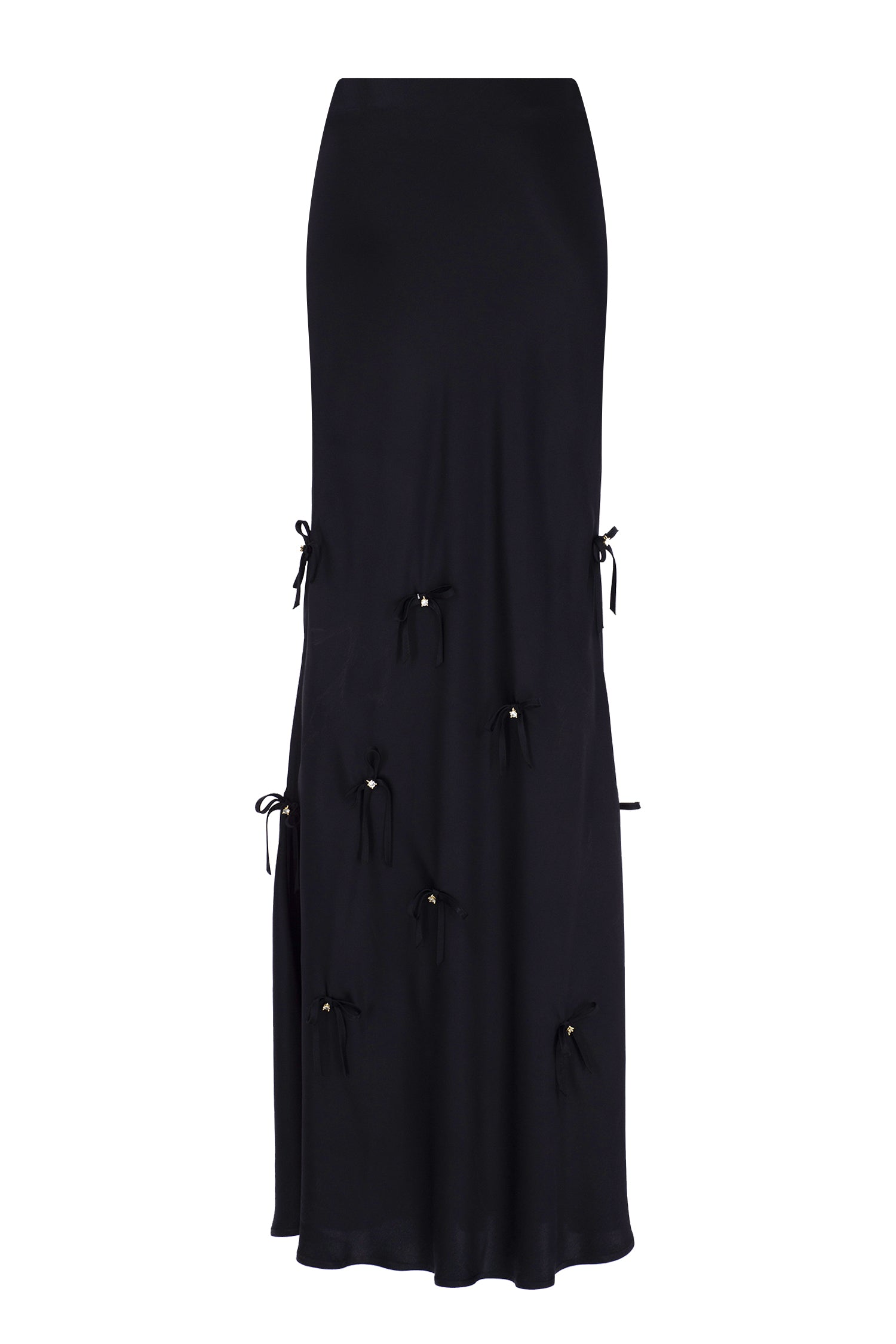 Glamour Siyah Etek, modern zarafeti klasik dokunuşlarla bir araya getiriyor. Siyahın zamansız şıklığını taşıyan bu özel tasarım, taş süslemeli minik fiyonk detaylarıyla feminen bir estetik sunar. Hafif ve dökümlü yapıya sahip %100 viskon kumaşı sayesinde gün boyu konfor sağlarken, verev kesimi eteğin belden kalçaya oturup zarifçe açılmasını sağlar. Hem günlük hem de akşam stillerinde rahatlıkla kullanılabilen bu etek, şıklığı ve hareket özgürlüğünü bir arada sunar.