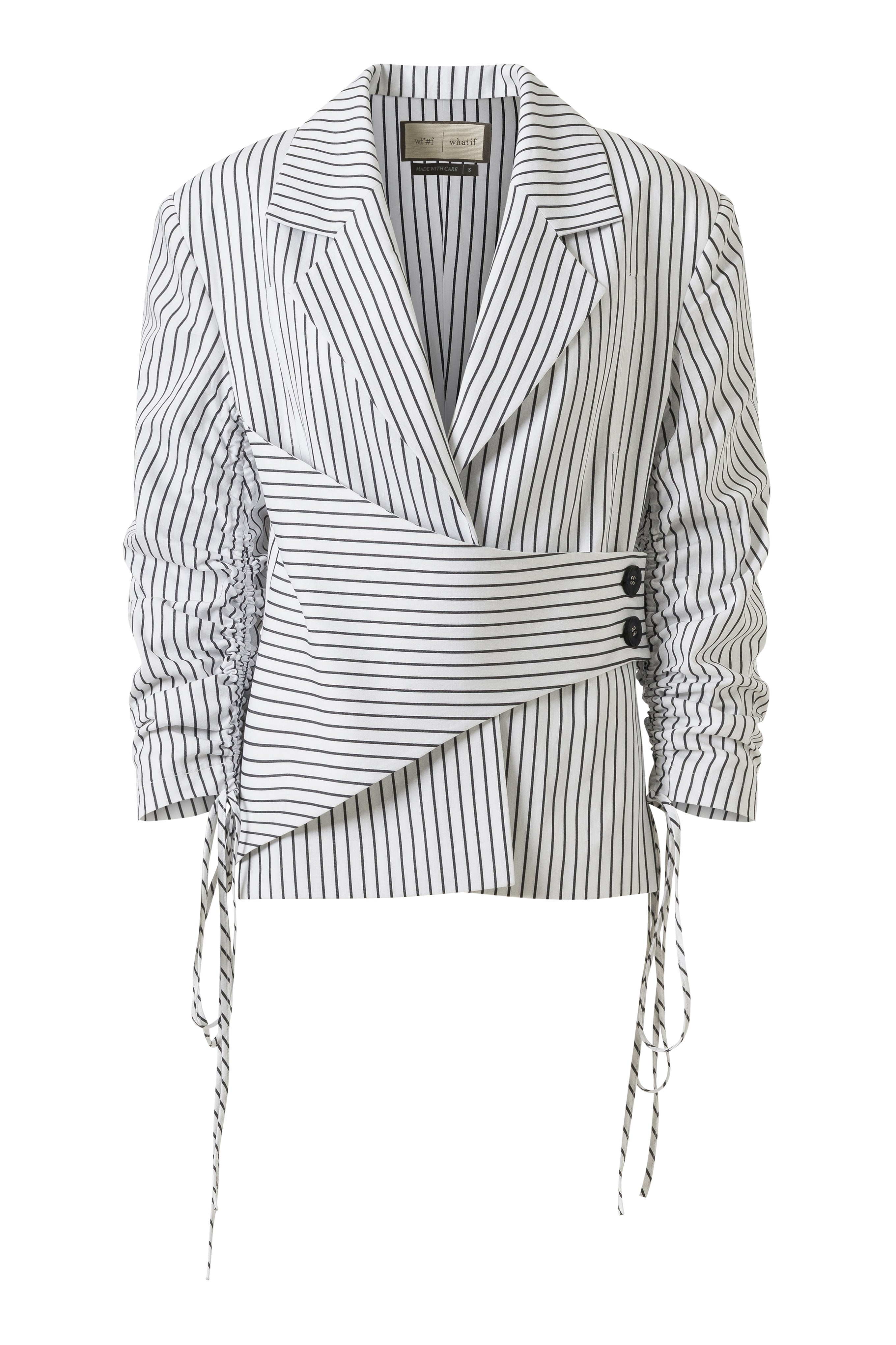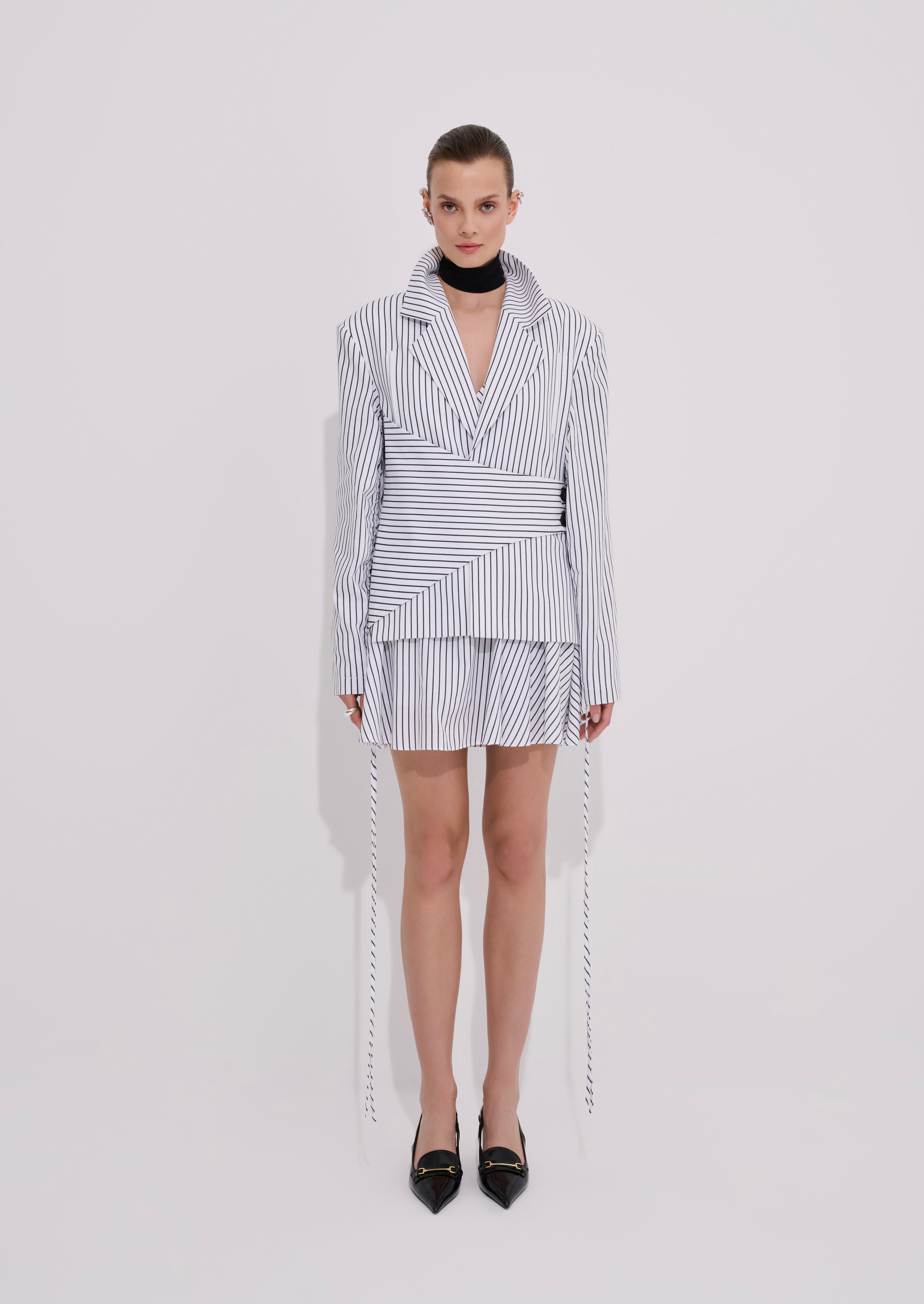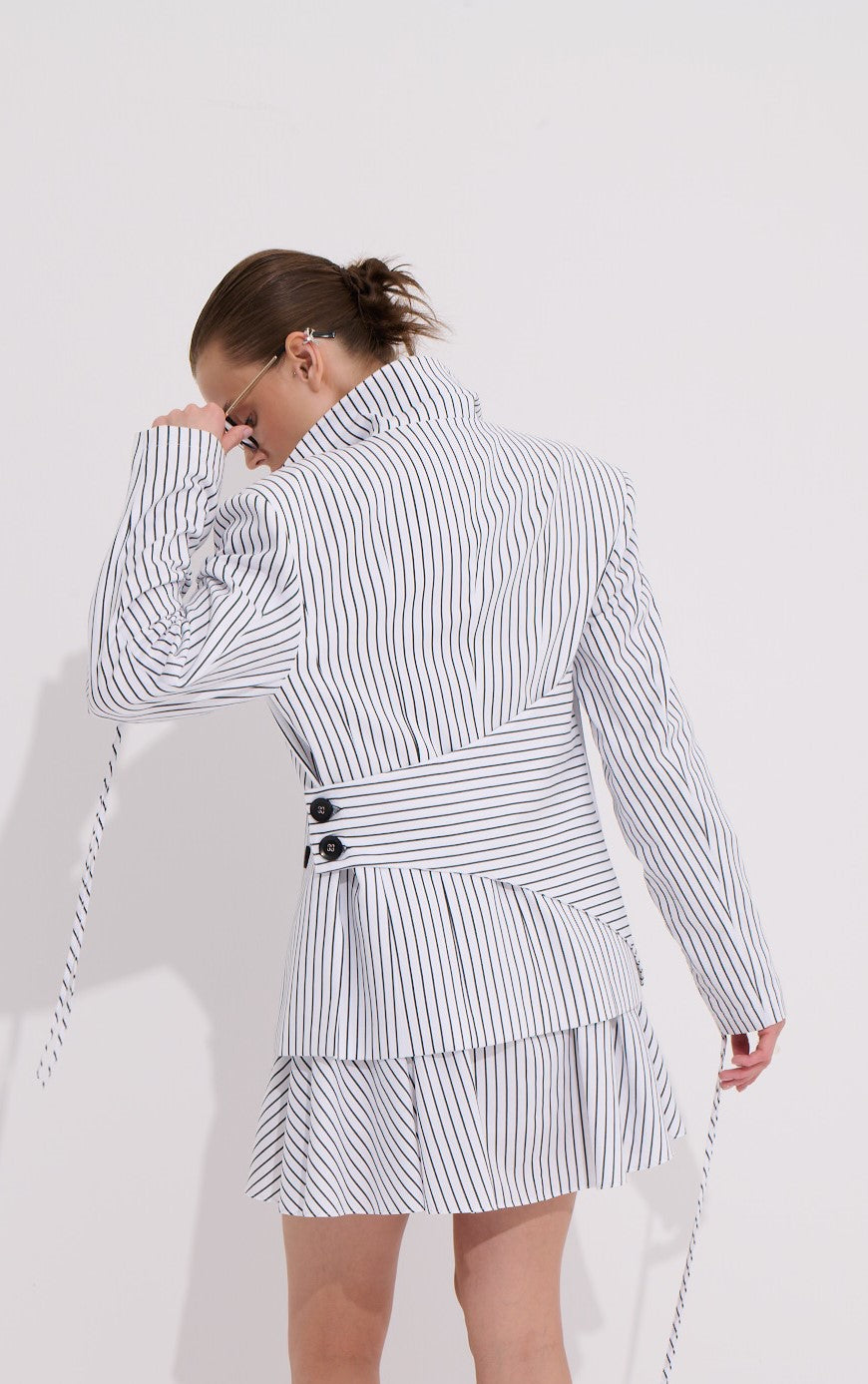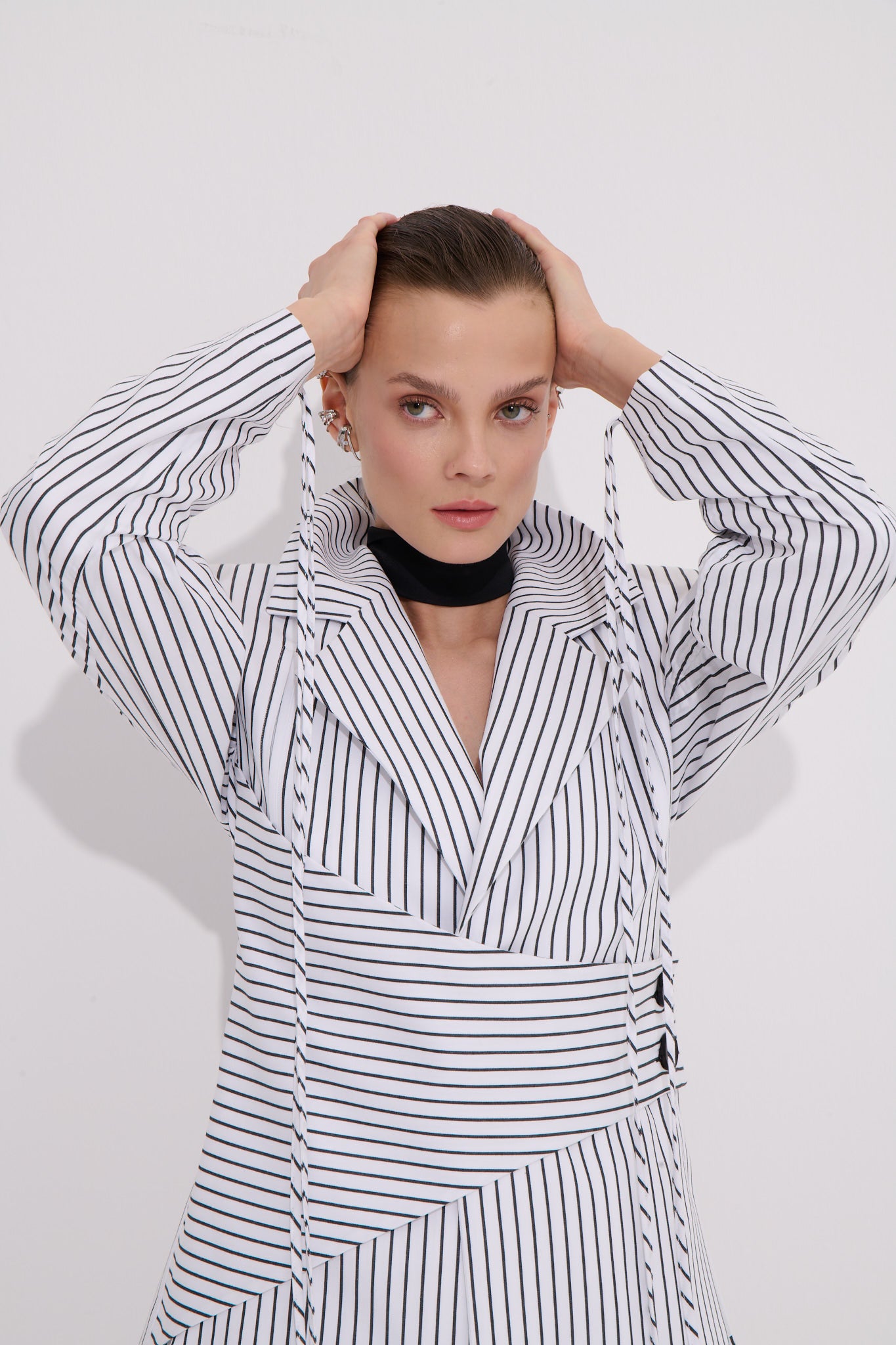 Öndeki dekoratif kuşaklar hem önden hem de arkadan bağlanarak farklı şekillerde kullanılabilir. Kollarındaki buzgü detaylarıyla ayarlanabilir yapıdadır. İç kısmı hafif vual astarla desteklenmiş olup konforlu ve kaliteli bir kullanım sağlar