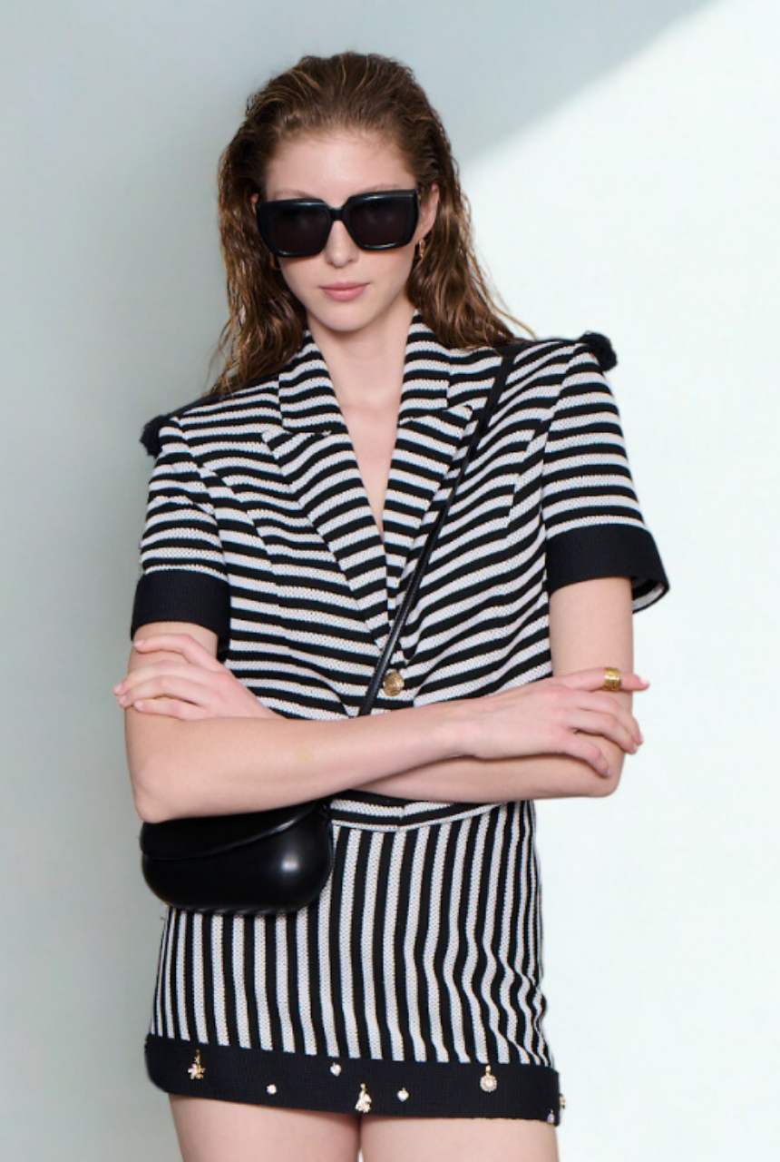 • Desen: Yatay siyah-beyaz dokulu kumaş
