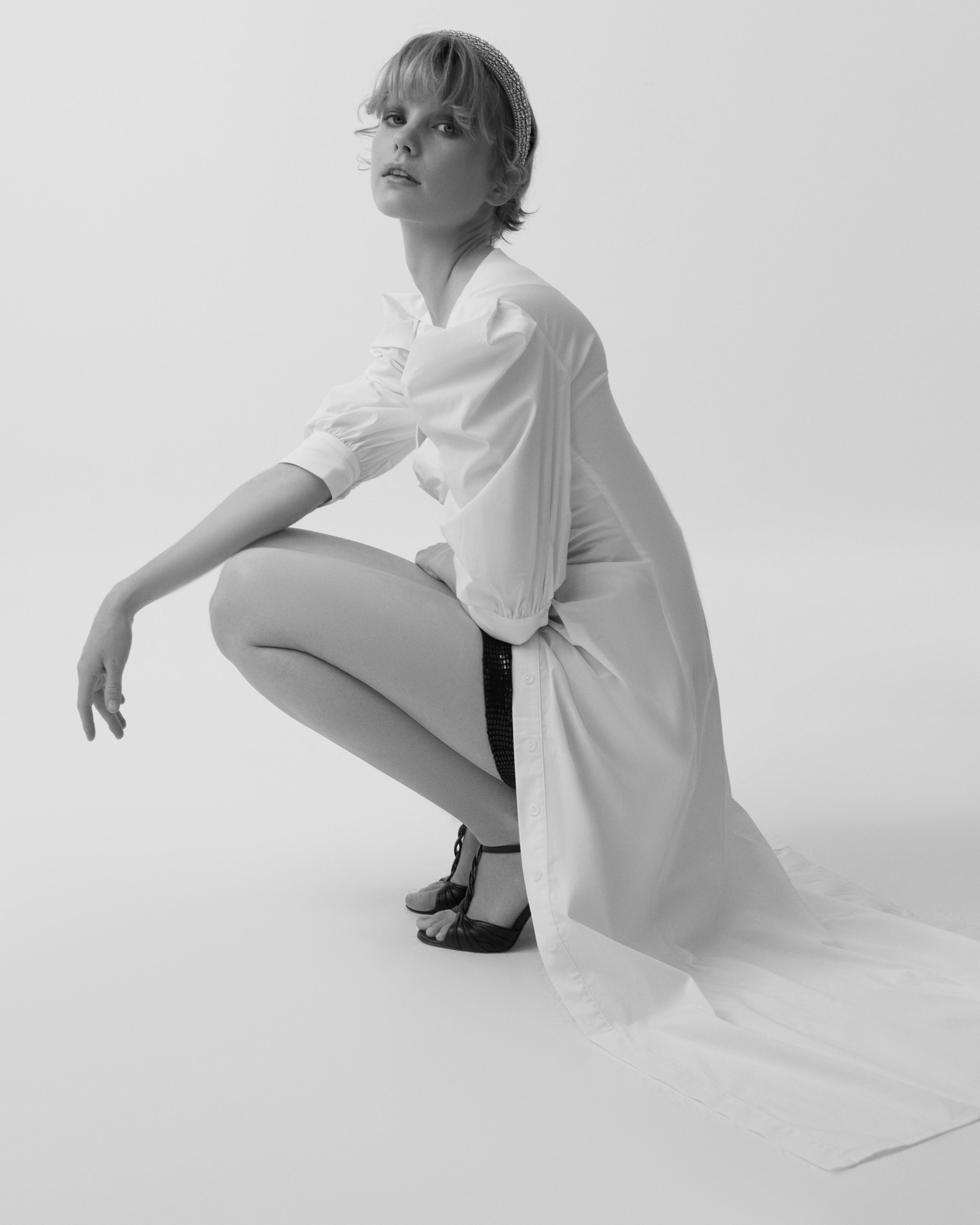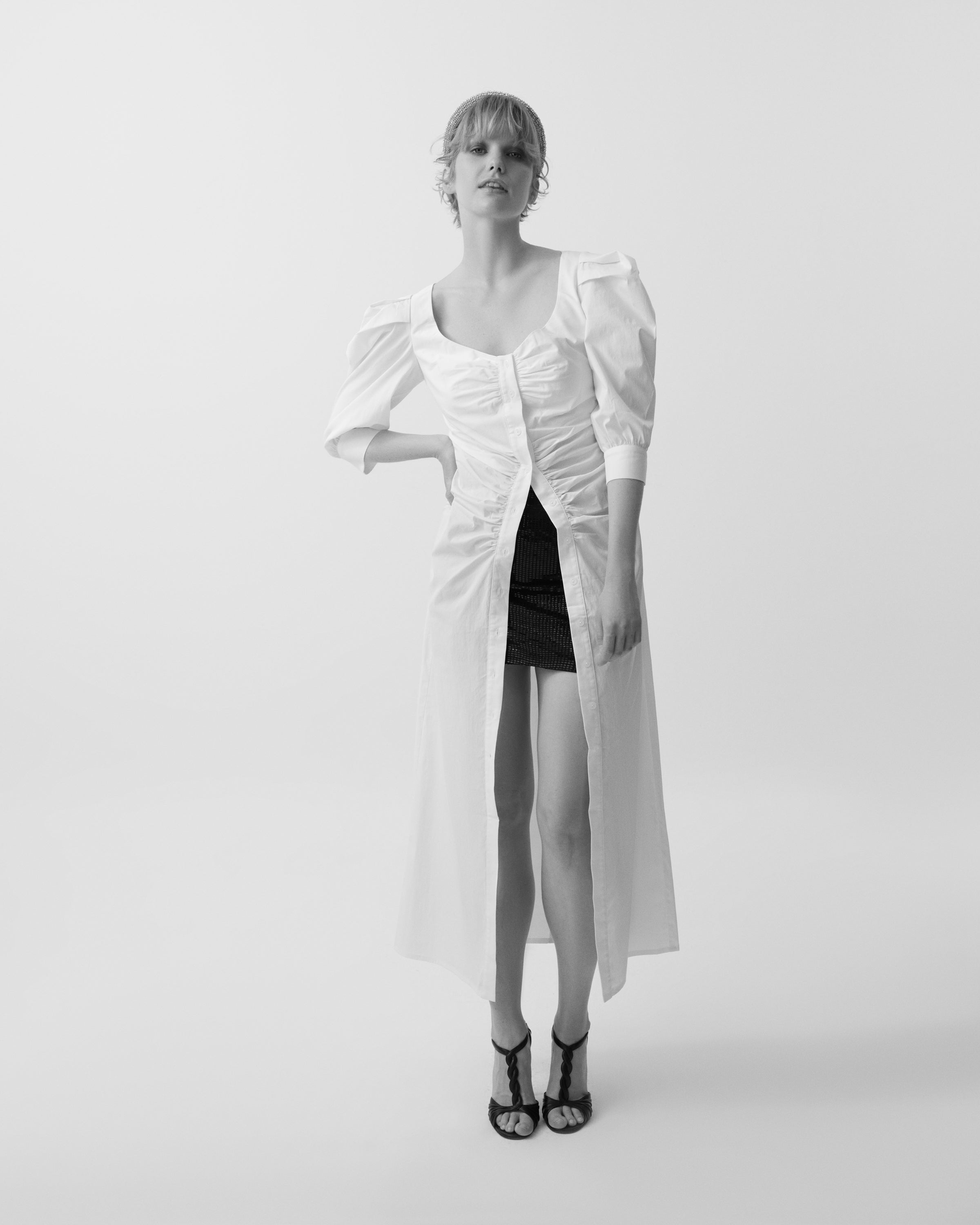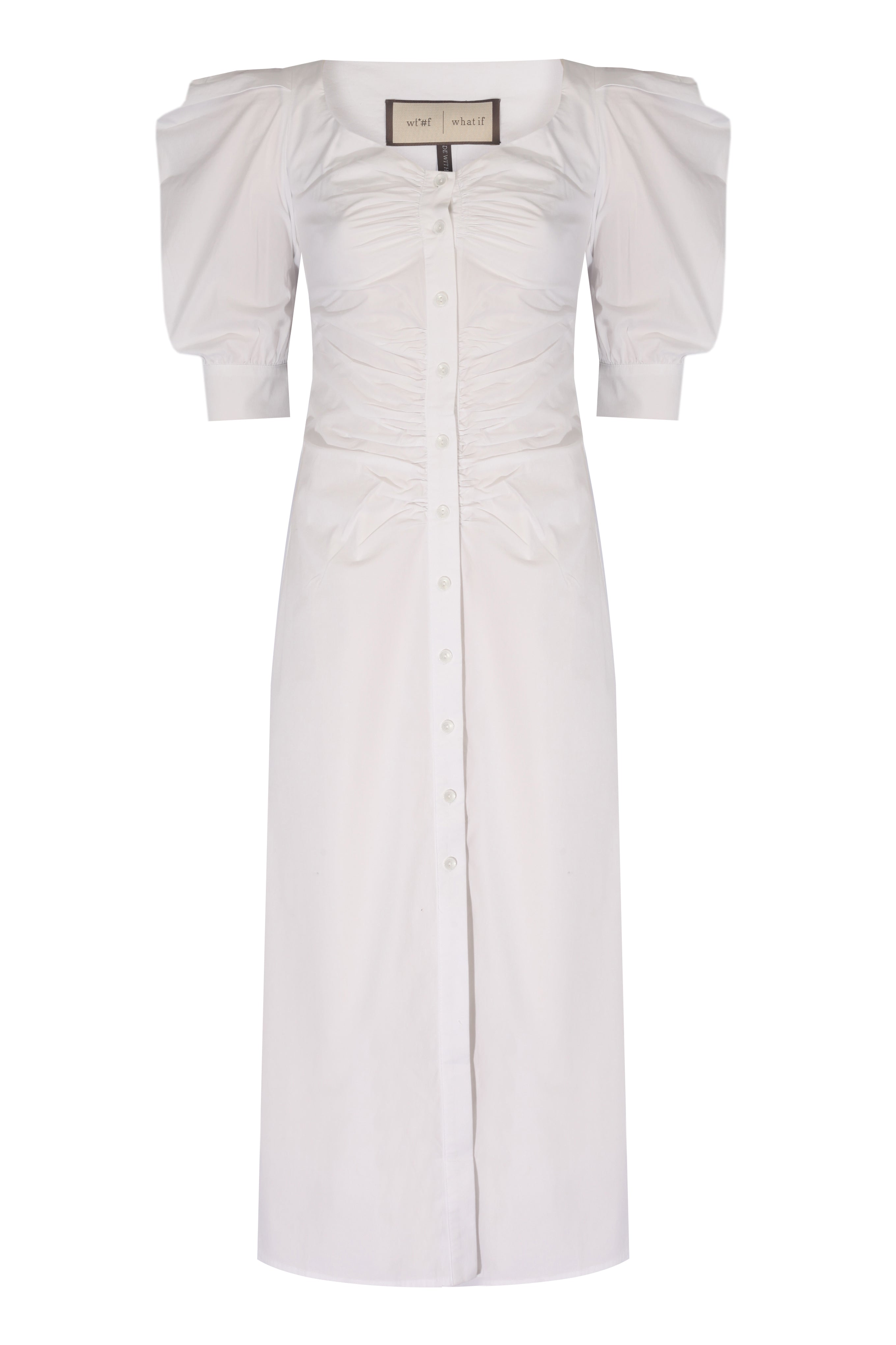 Aurora Büzgülü Elbise, yaz gardırobunuza zarafet ve enerji katmak için tasarlandı. Beyaz rengin ferahlığıyla birleşen fırfır ve düğme detayları romantik bir stil yaratırken, balon kollar elbiseye modern ve oyunbaz bir dokunuş kazandırıyor. Hem şehir şıklığında hem de özel anlarda bu parça, hafiflik ve konforla öne çıkıyor.