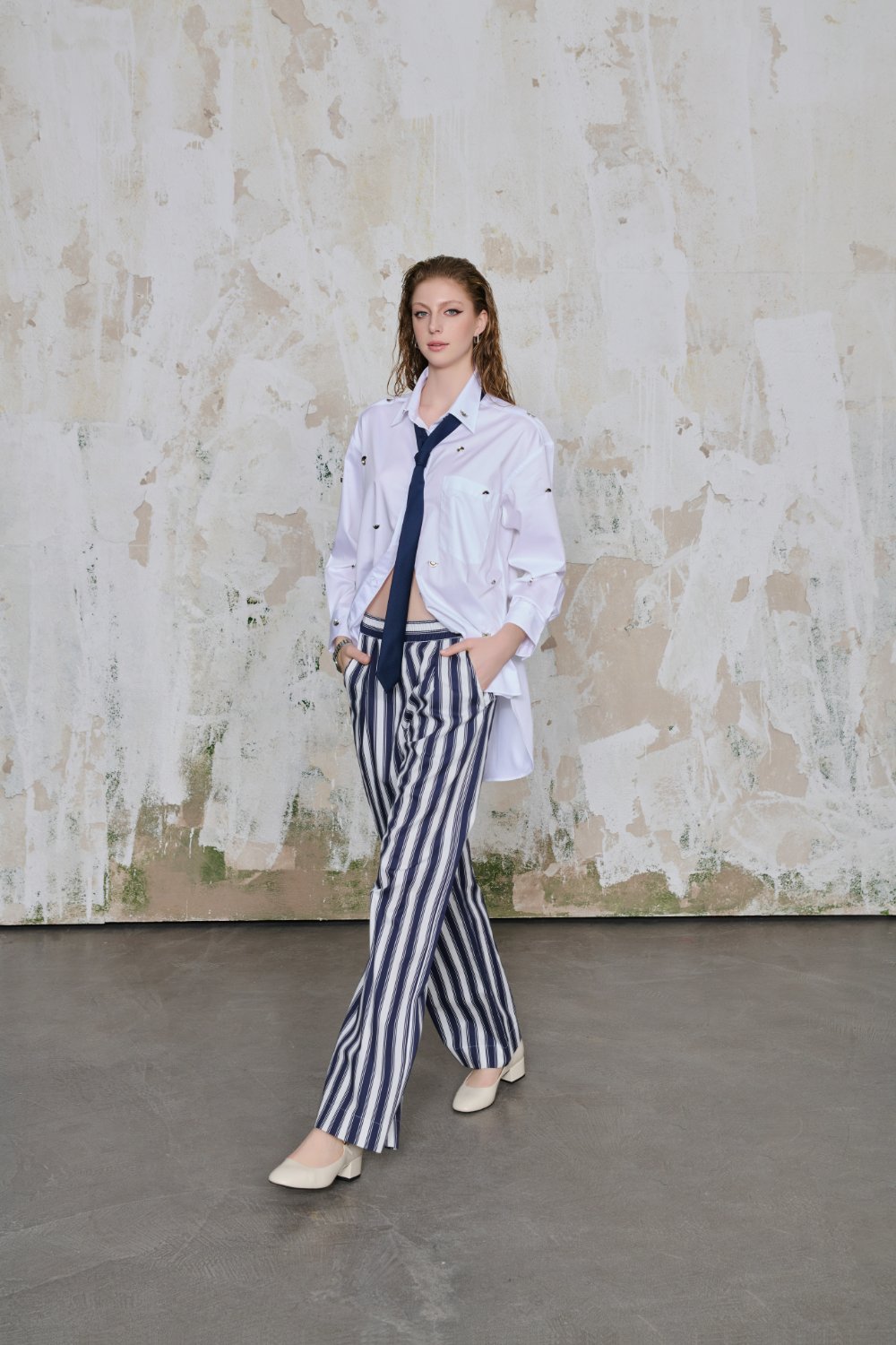 WhatIfBrand'ın Colette Pantolonu, modern çizgileriyle alçak bel formülü ve geniş paça bölümüyle güçlü bir duruş sunuyor. Zamansız çizgi deseni, klasik stile çağdaş bir yorum getirirken günlük kullanımdan özel anlara kadar çok yönlü bir alternatif oluşturur. %100 pamuklu doğal yapısı sayesinde gün boyu konfor sağlar.