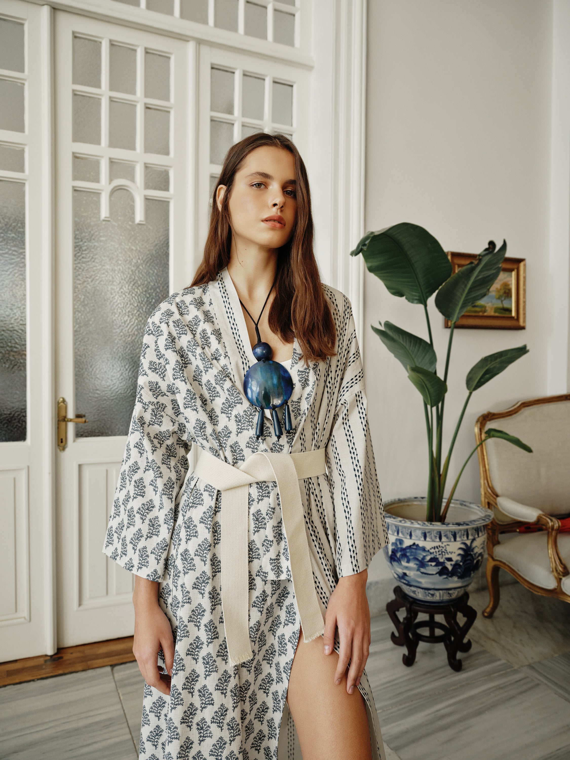 Sıcak yaz günleri için tasarlanan Polina Kimono, doğal dokusu ve modern çizgileriyle plaj stilinize zarif bir dokunuş katar. Asimetrik bölünmeyle hareketli bir siluet sunarken, hafif pamuklu kumaşı gün boyu konfor sağlar. Plajdan şehre, çok yönlü kullanımıyla yaz gardırobunun öne çıkan parçası olmaya aday.
