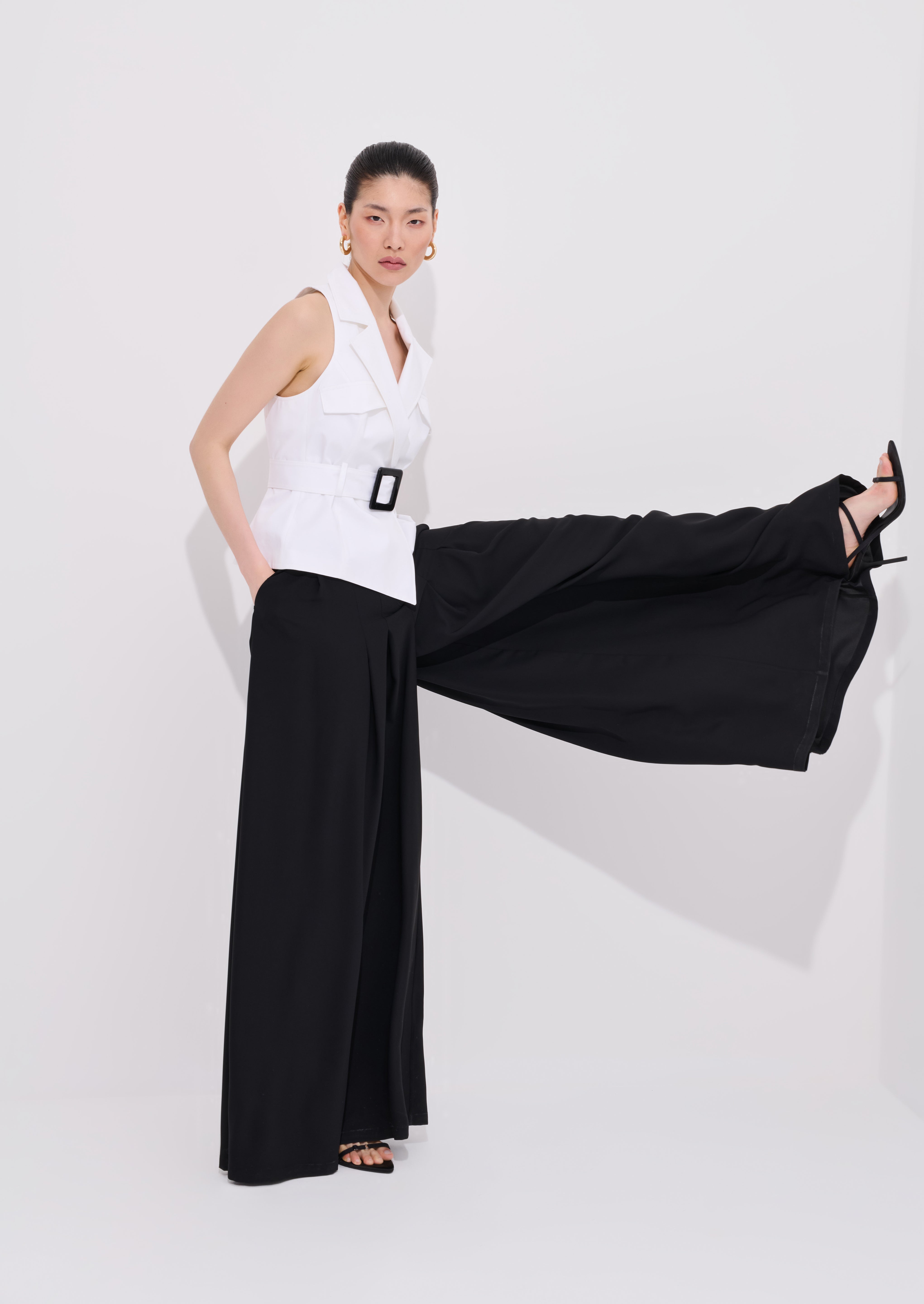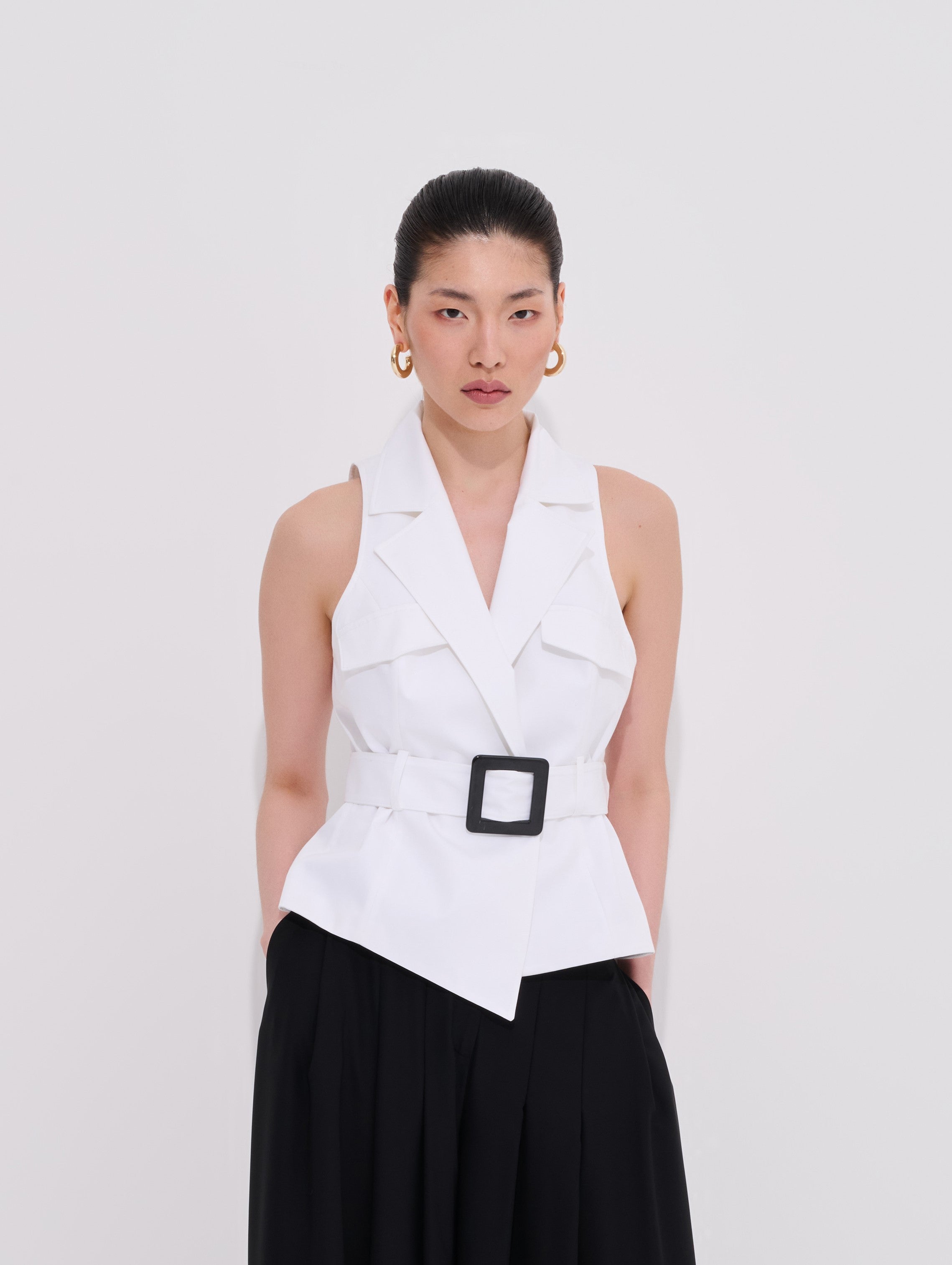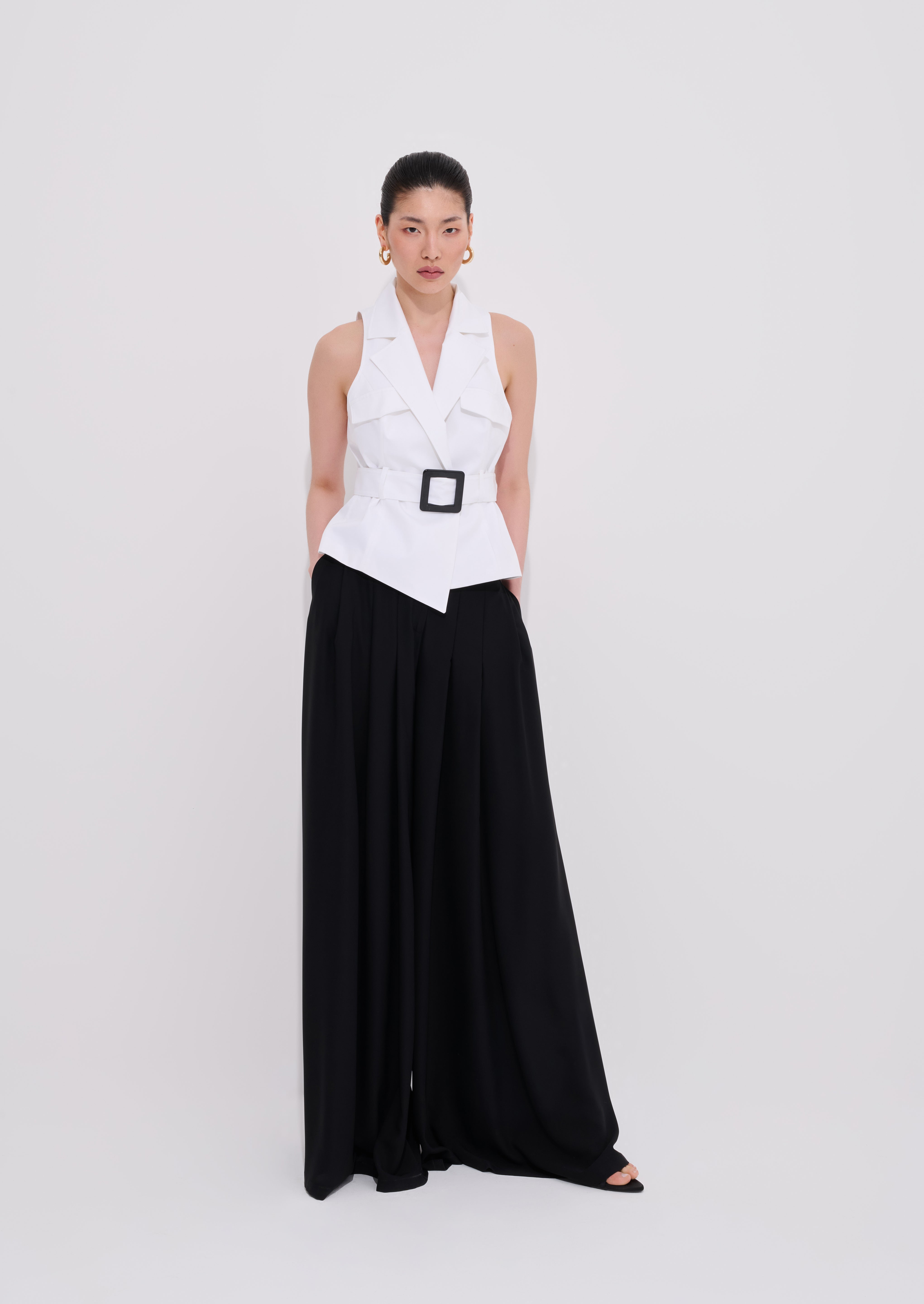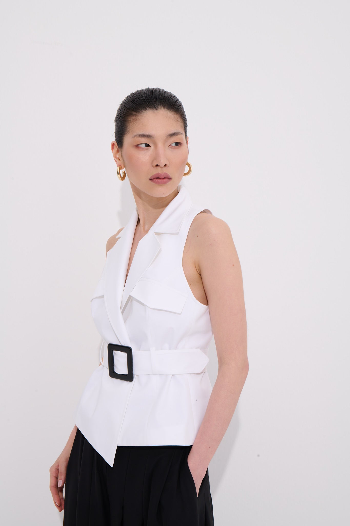 Modern kesim çizgilerini feminen zarafetle buluşturan bu beyaz ceket yapılandırılmış formu ve kemer detayıyla öne çıkar. Bel kısmını vurgulayan kuşak silueti şekillendirirken sade ve şık duruşuyla hem gündüz hem akşam kombinlerine kolayca uyum sağlar