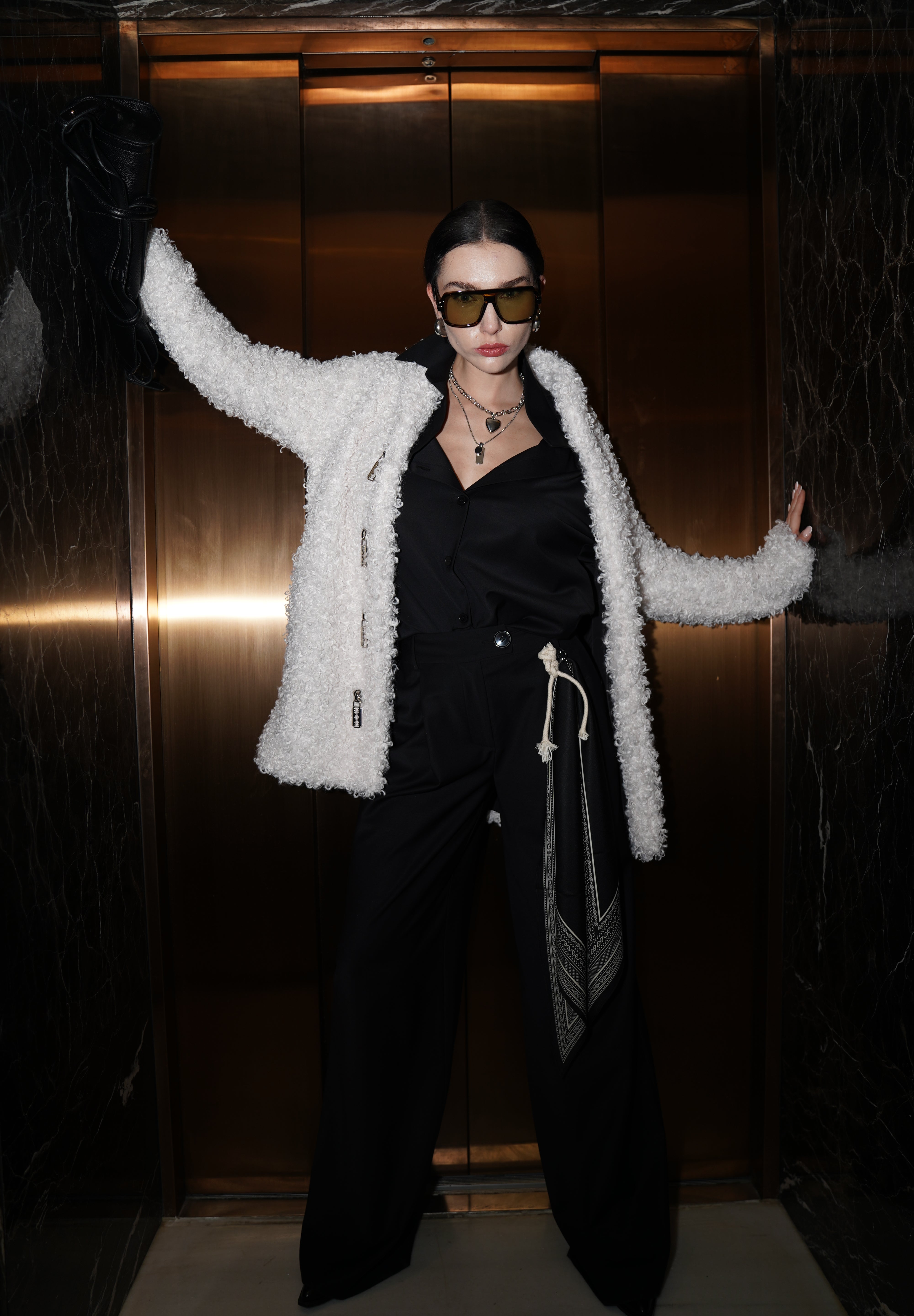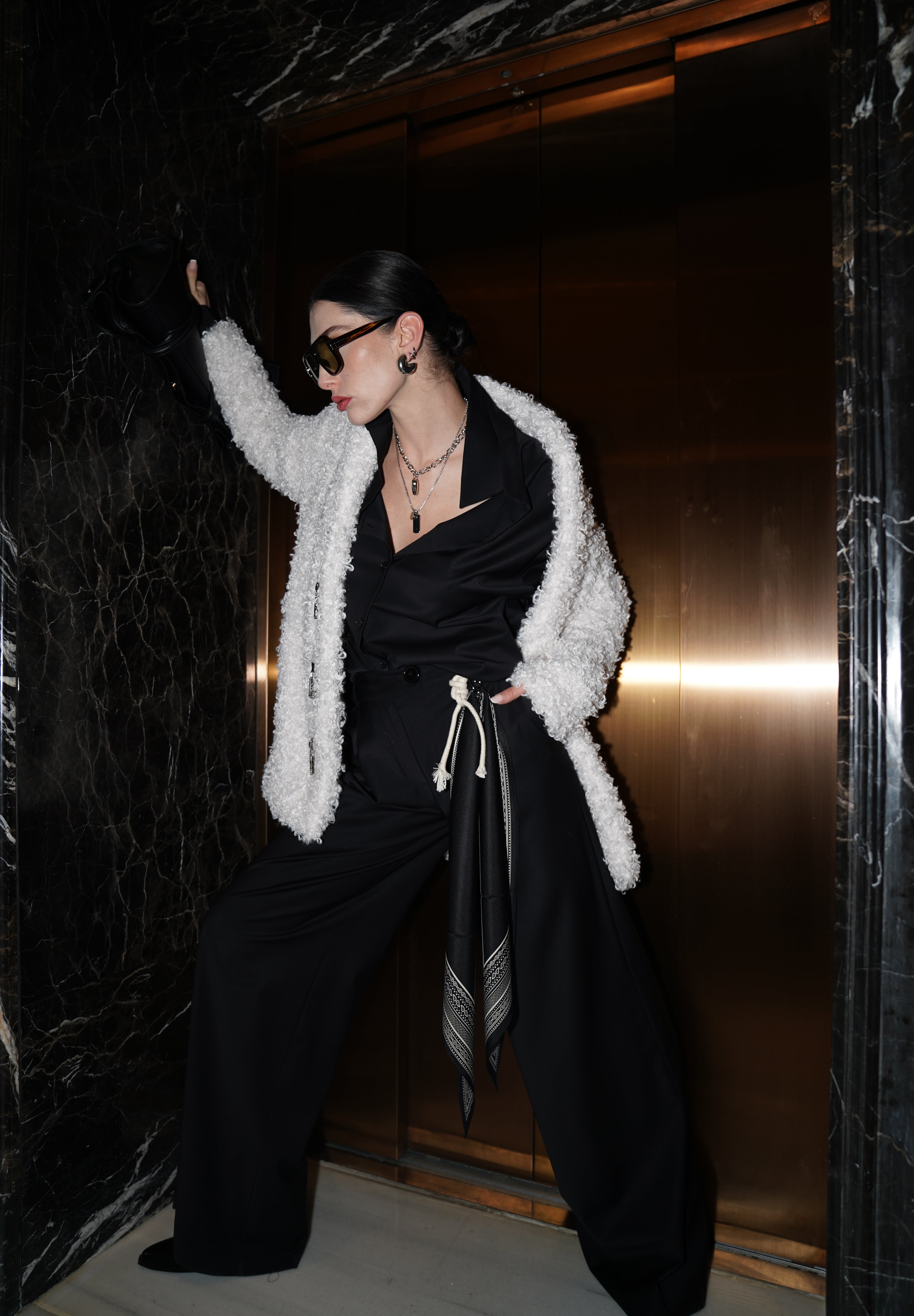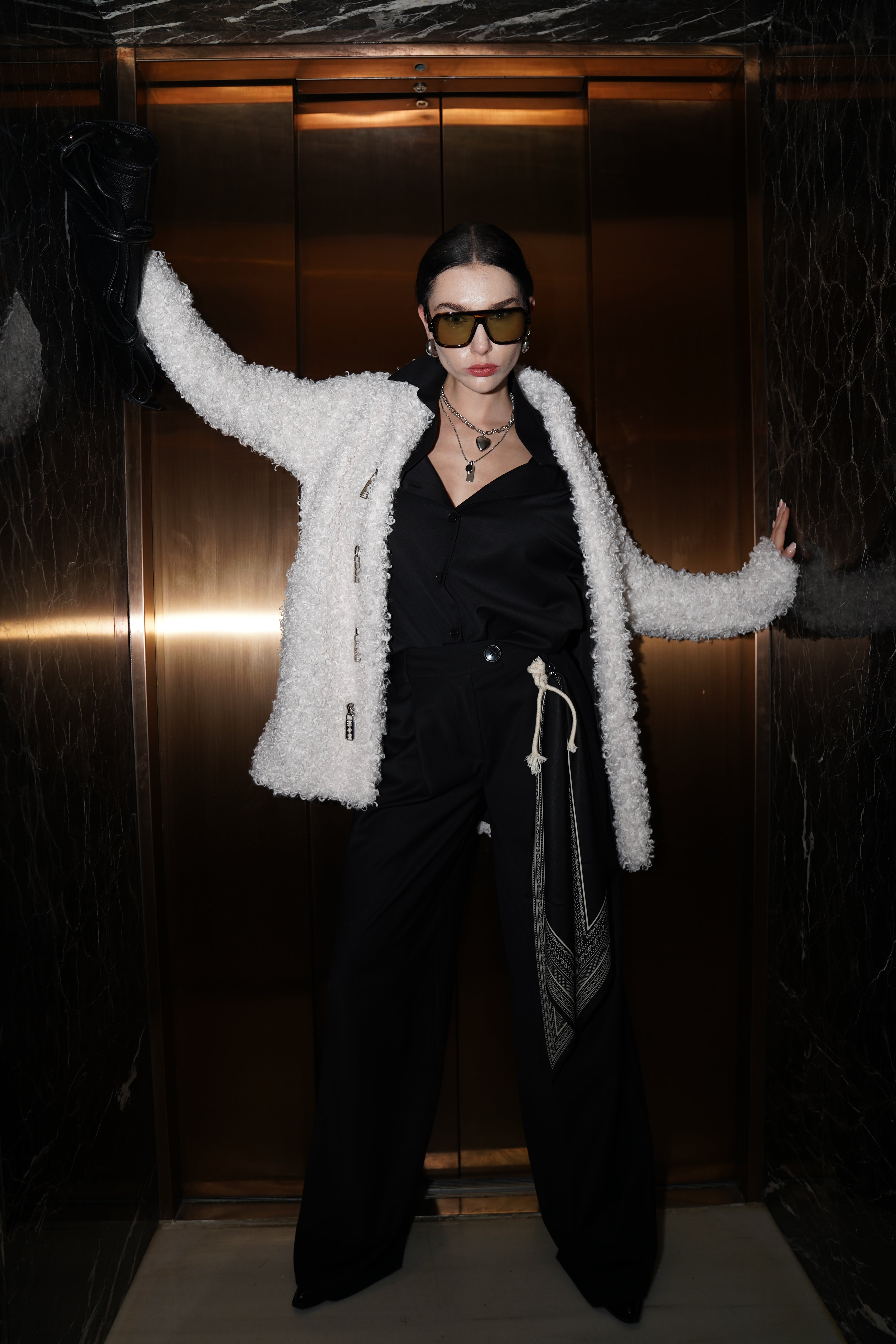 Klasik çizgileri modern detaylarla buluşturan bu geniş paçalı pantolon, rahat kesimiyle gün boyu konfor sunarken zarif duruşundan ödün vermez. Yün karışımlı kaliteli kumaşı dökümlü bir siluet oluşturur. Yan kısmındaki çıkarılabilir fular detayı tasarıma özgün bir dokunuş katarken, kemer halkaları ve özenli dikiş hatlarıyla sofistike bir görünüm tamamlanır.