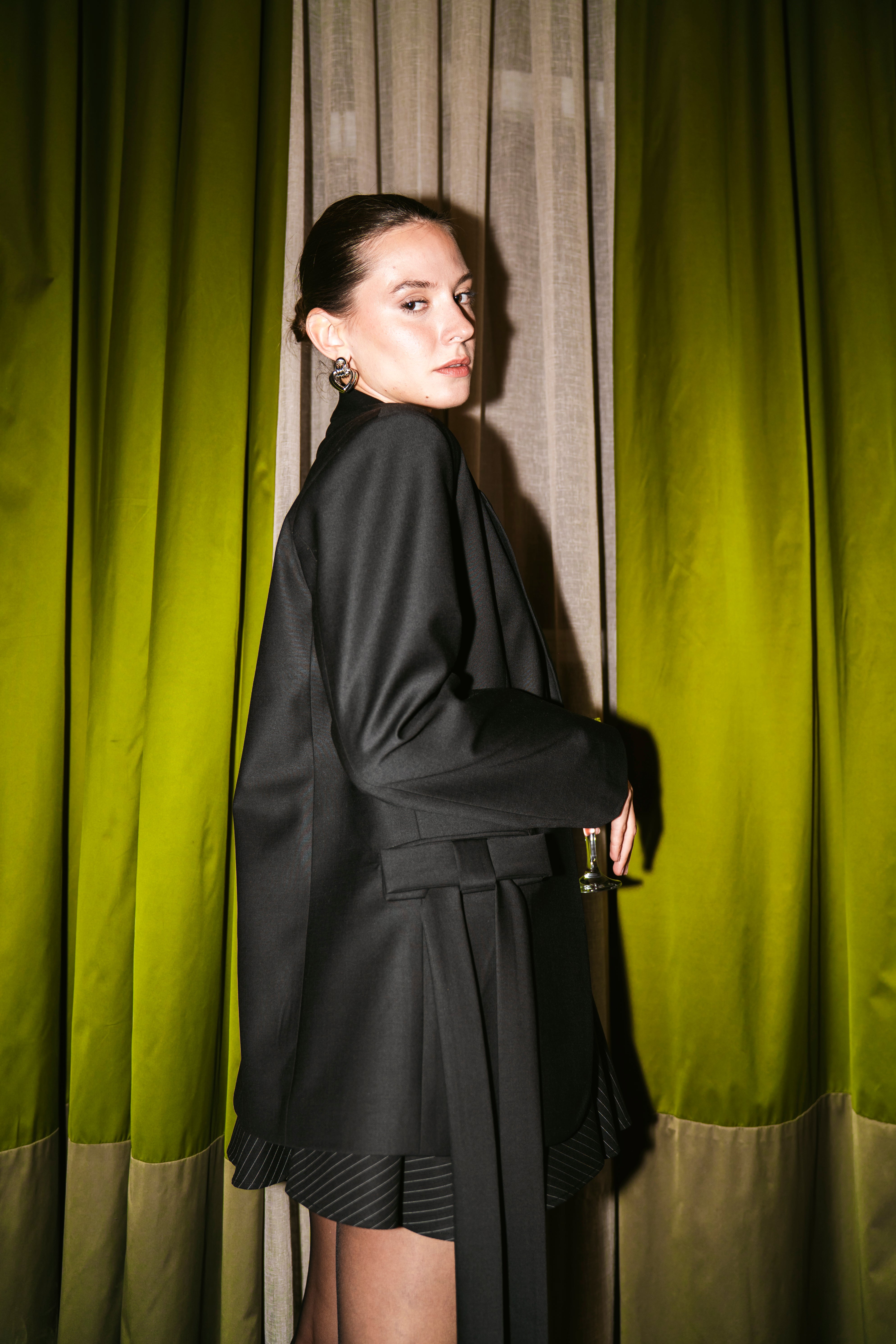 Ophelia Kürk ve Fiyonk Detaylı Ceket zarafet ve işlevselliği bir arada sunar Yumuşak dokulu kürk yakası ve beldeki fiyonk detayları sofistike bir duruş katarken çıkarılabilir olması farklı stiller yaratma imkanı tanır Günlük şıklıkta ya da özel davetlerde kolaylıkla kombinlenir