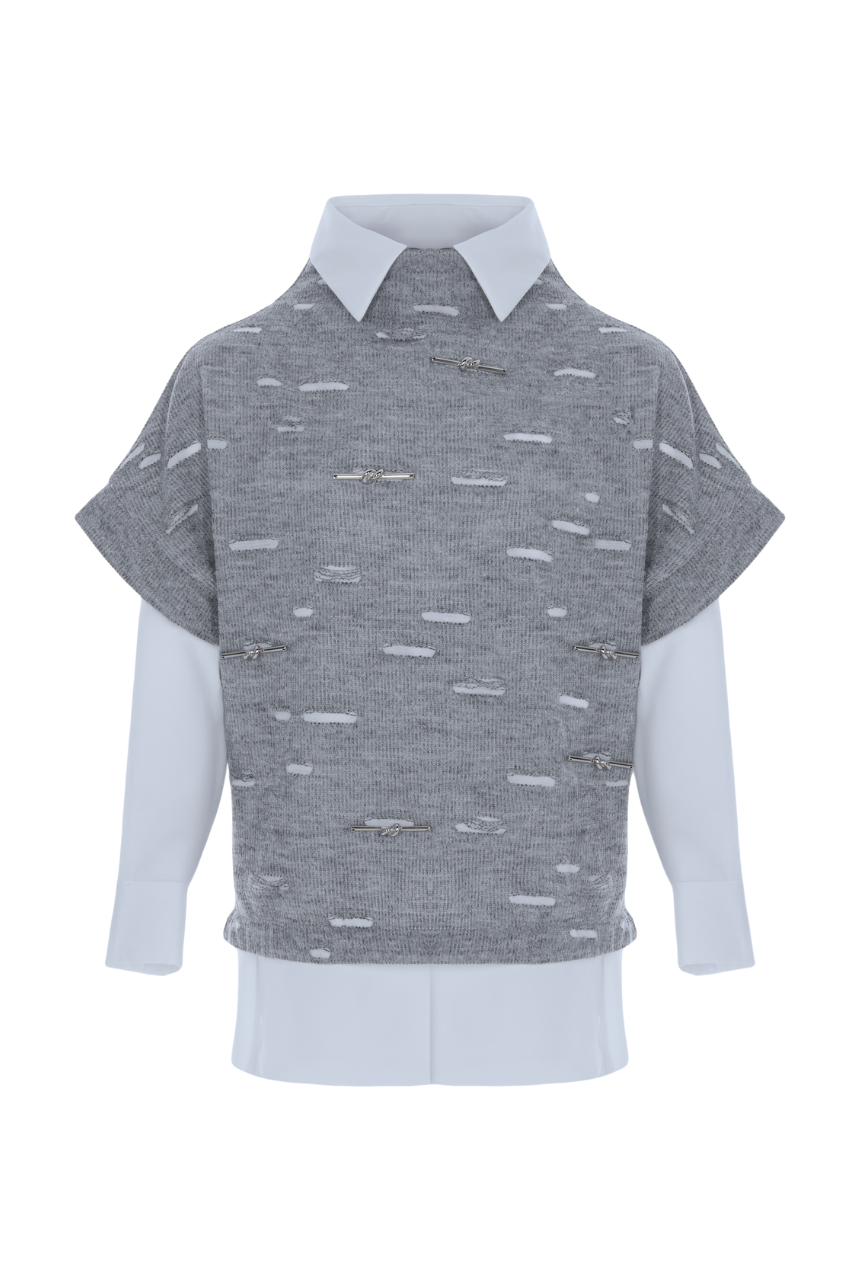 İki parçadan oluşan bu özel tasarım, gömlek ve triko bluzu bir araya getirerek modern ve sofistike bir görünüm sunar. Gömlek kısmı zarif bir temel oluştururken, üzerine giyilen triko katman sıcaklık ve hacim kazandırır. Trikonun üzerinde yer alan metal aksesuar detayları tasarıma karakteristik bir dokunuş katar. Hem ofis stilinde hem de şehir şıklığında kolayca kombinlenebilir, ayrı ayrı da kullanılabilir. İkili satış fiyatına gömlek ve triko birlikte dahildir.
