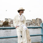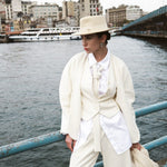 Klasik terziliği modern bir formda yorumlayan bu ceket belde kavrayan silueti ve güçlü omuz hattıyla etkileyici bir duruş sunar