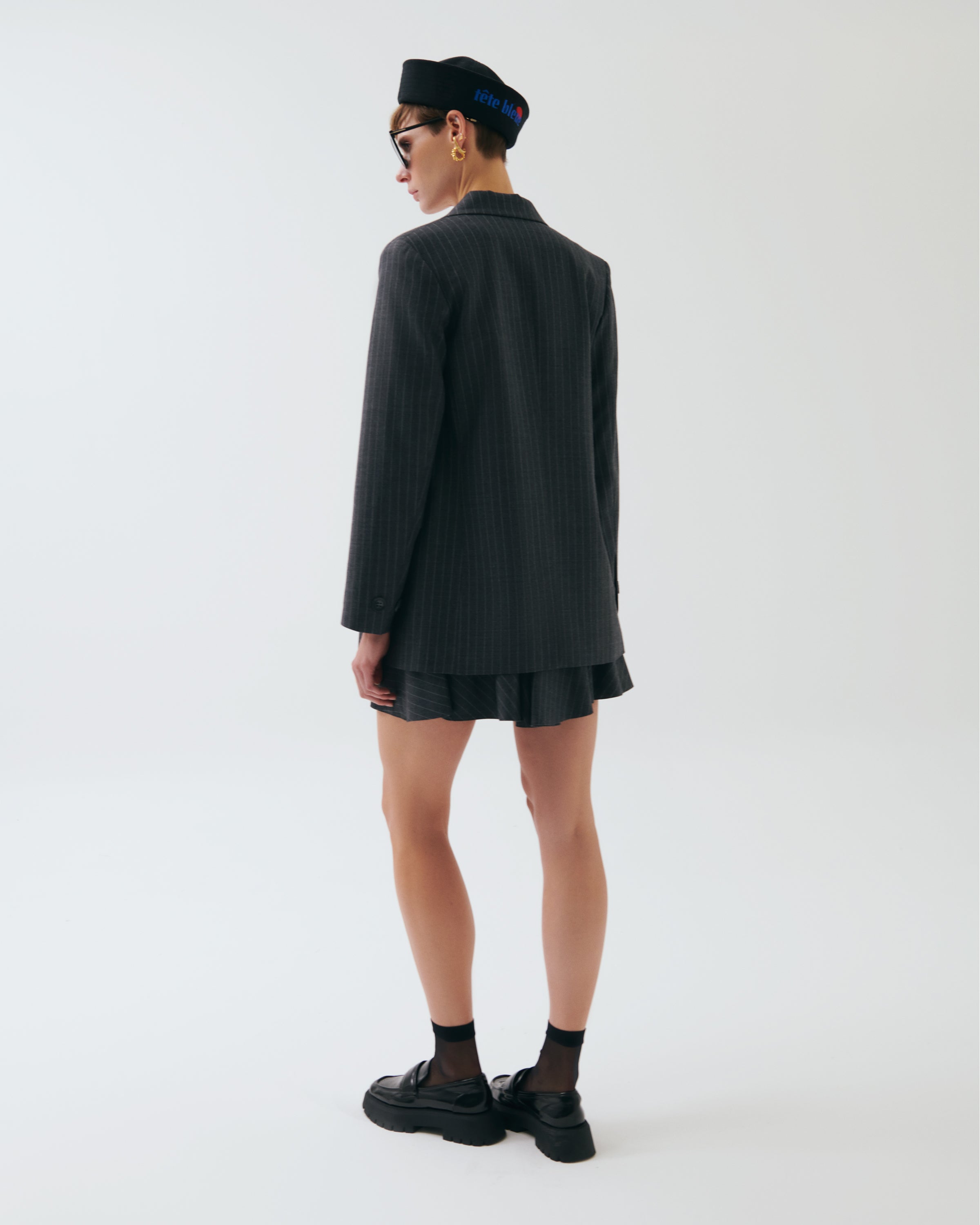 Audrey Çizgili Ceket, yün kumaşı ve çizgili deseniyle klasik şıklığı modern çizgilerle buluşturur. Serin havalarda sıcaklık sunarken çizgili dokusu ile karakterli bir stil yaratır