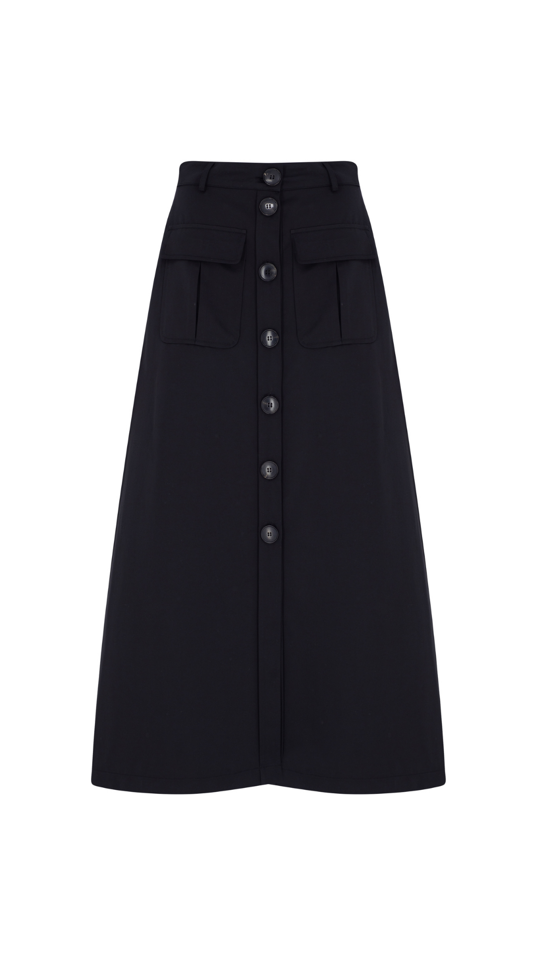 Önden düğmeli tasarımı ve iki kargo cebiyle dikkat çeken bu uzun etek, tarzınıza tazelik ve özgünlük katıyor. Kargo ceplerin eklediği pratiklik ve hafif 'kaba' stil dokunuşu sayesinde bu etek, gardırobunuzun hem rahat hem de şık bir parçası olacak. İşlevselliği ve zarafeti mükemmel bir şekilde birleştiren bu tasarım, farklı üstlerle kolayca kombinlenebilir ve çok yönlü bir kullanım sunar