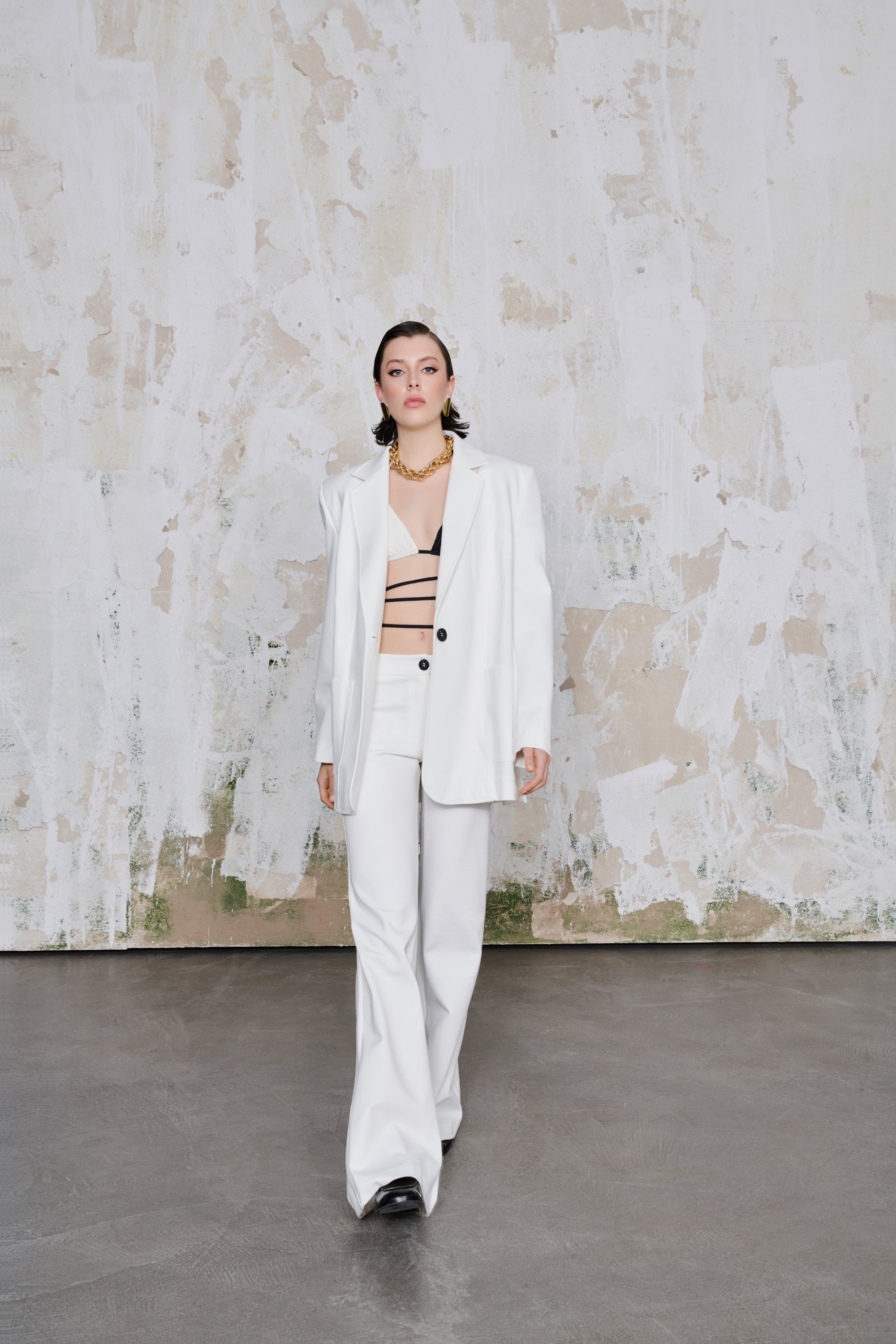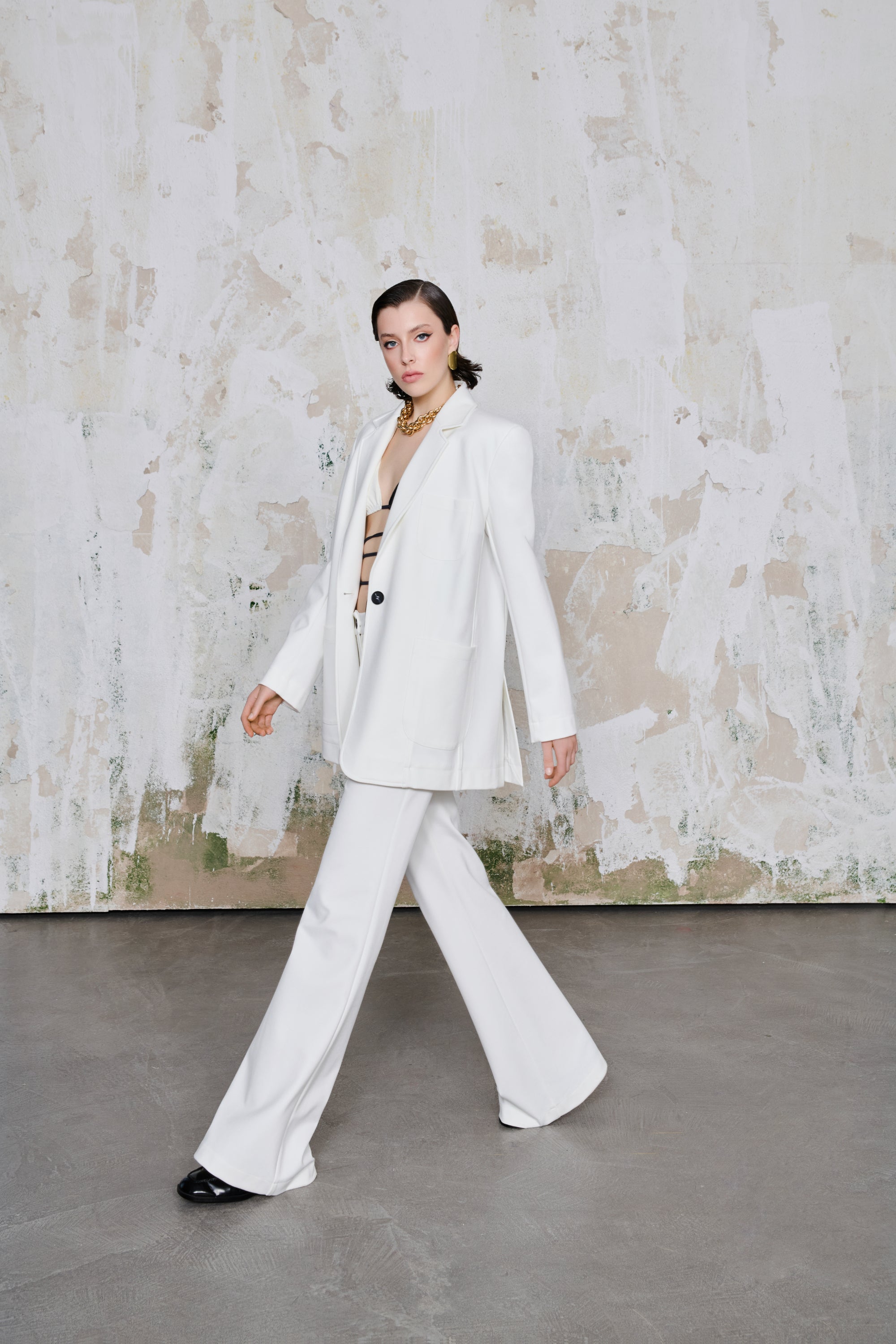 Maëlle Ceket, modern çizgilerle şekillendirilmiş zamansız bir görünüm sunar. Bol ve rahat kesimiyle güçlü bir siluet yaratan bu tasarım, sade formunu yüksek kaliteli örme kumaşıyla tamamlar. Beyaz rengi sayesinde her stile kolayca uyum sağlar. Ön kısmındaki büyük cepler ve tek düğmeli kapanış hem pratiklik hem de şıklık sunar. Günlük stilinize modern bir dokunuş katmak ya da ofis şıklığını güçlendirmek için ideal bir parçadır.