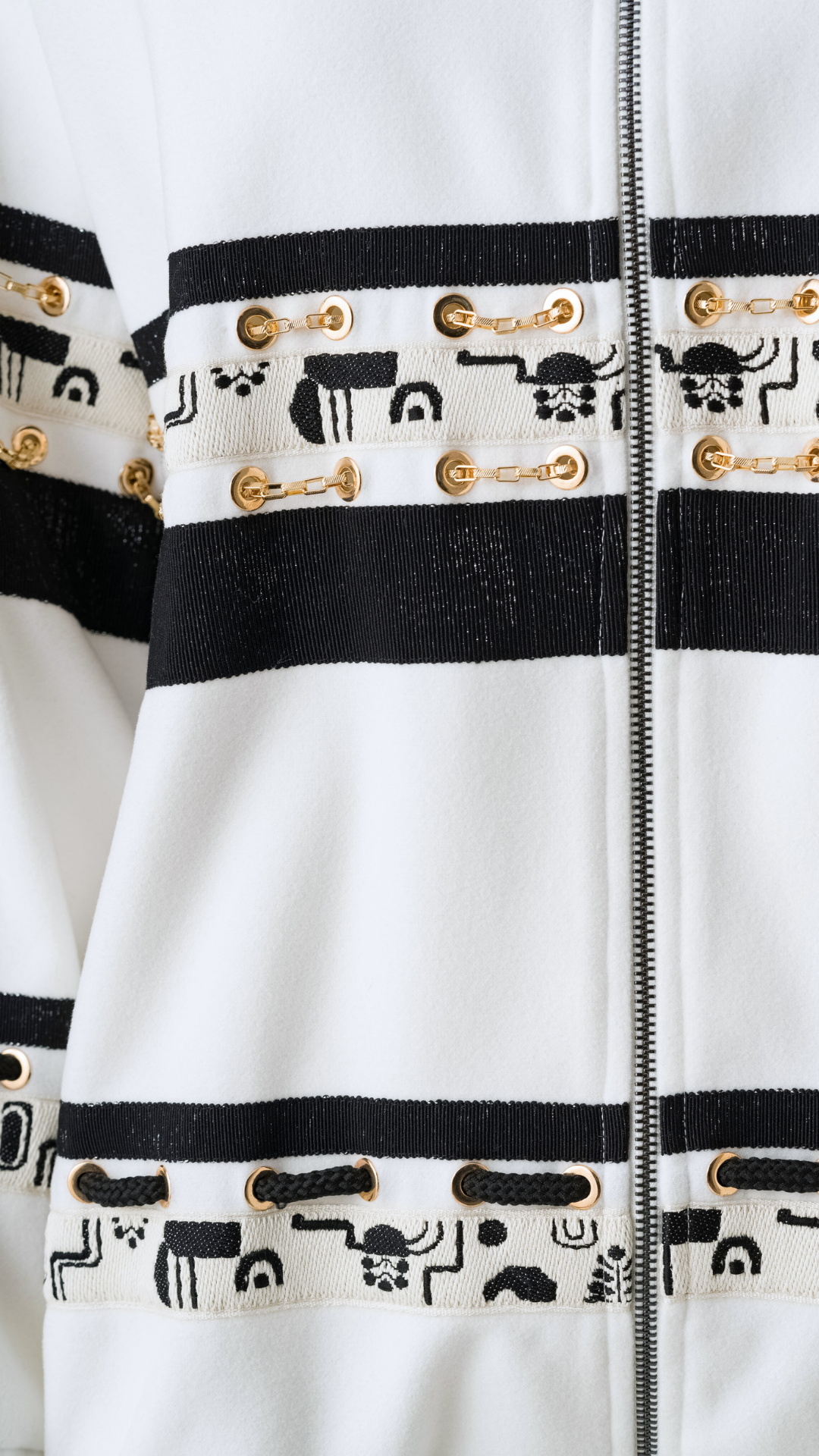 Bu lüks kaşmirden üretilmiş zarif spor ceketi iç astardaki özel desenleri ve fermuar detaylarıyla benzersiz bir tasarım sunuyor. Sadece sıcak tutmakla kalmayan bu bombacı ceket zarafet ve özgünlüğü bir araya getirerek şık görünümler için ideal bir seçim haline geliyor. Fermuar ayrıntıları ceketin genel görünümüne sofistike bir vurgu eklerken şıklık ve konforu bir arada sunuyor. Her mevsim gardırobunuzun gözde parçalarından biri olacak bu ceket stilinizi bir üst seviyeye taşıyacak.