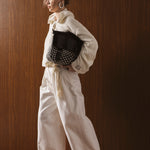 Zarif ve rahat tasarımıyla günlük şıklığı yakalayan bu geniş paça pantolon, %100 pamuklu dokuma kumaşıyla hem konforlu hem de şık bir görünüm sunuyor. Kumaşın içindeki desenli doku, sade görünüme özel bir karakter katarken, geniş ve akıcı kesimi modern bir siluet yaratıyor. Bel kısmındaki bağcık detayı, kişiselleştirilebilir bir uyum sağlarken, özel tasarım anahtarlık aksesuar ile birlikte satılarak kombinlerinize ekstra bir stil katıyor. Aksesuar çıkarılabilir özelliğiyle farklı kullanım imkanları sunuyor. İlkbahar ve yaz aylarının vazgeçilmez parçası olmaya aday.
