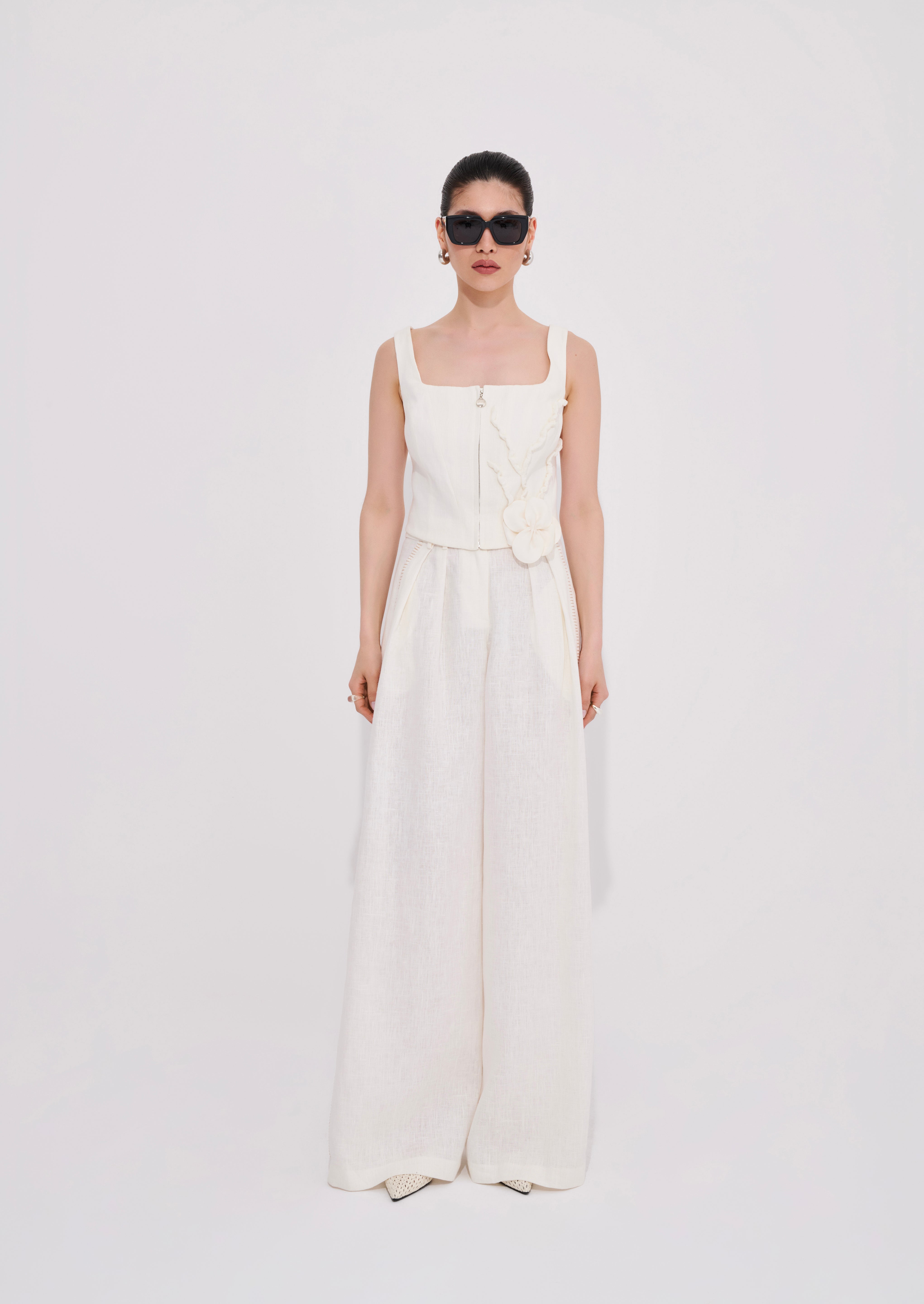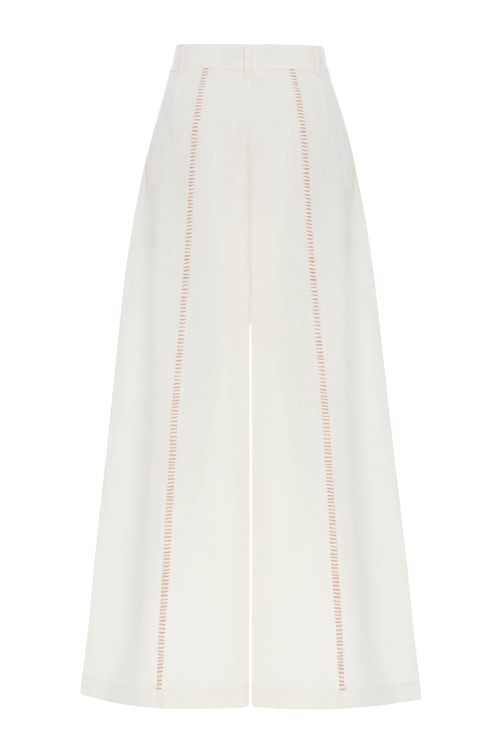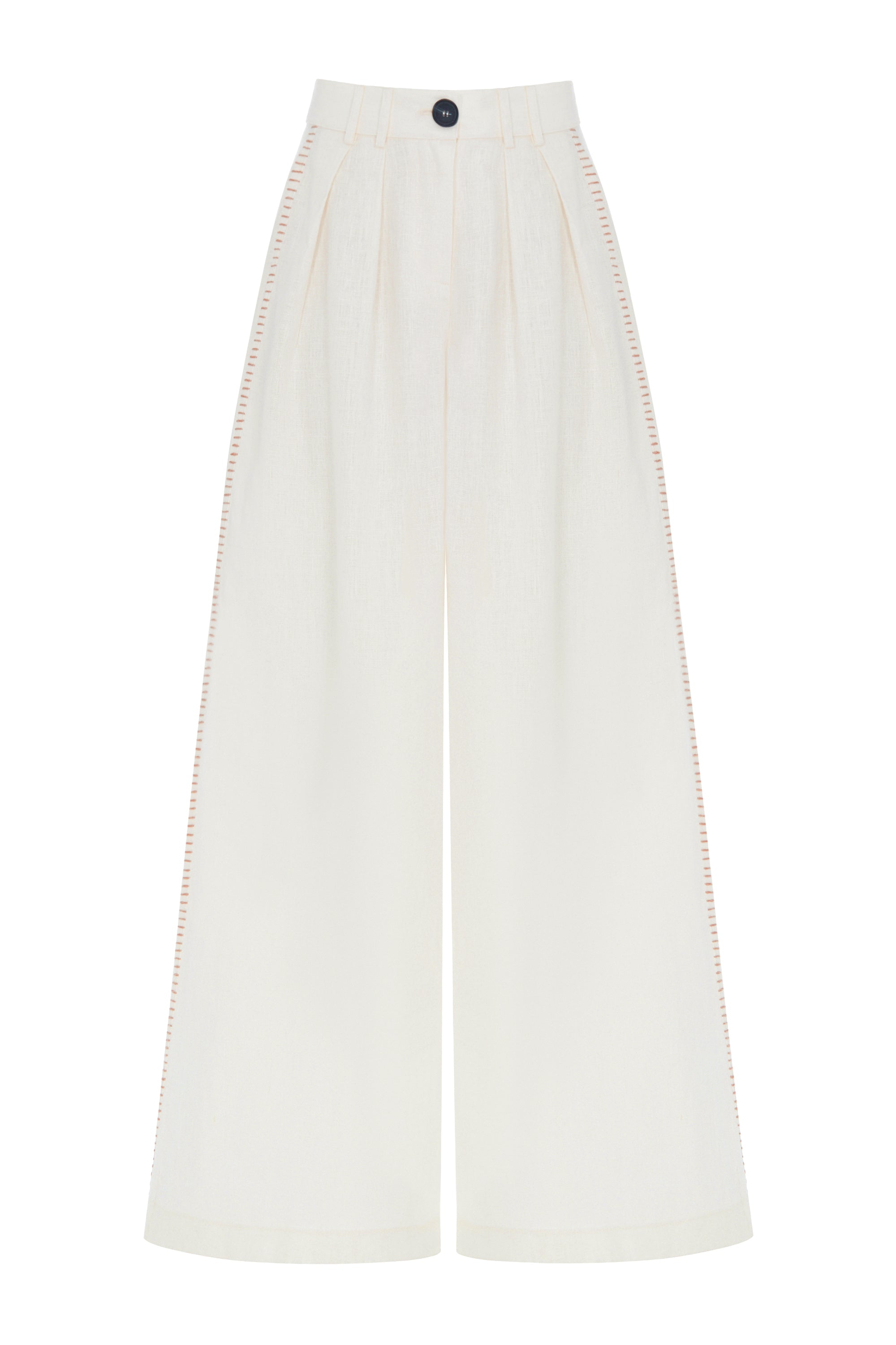 Ivory Pantolon %100 Keten Punto Dikiş Detaylı