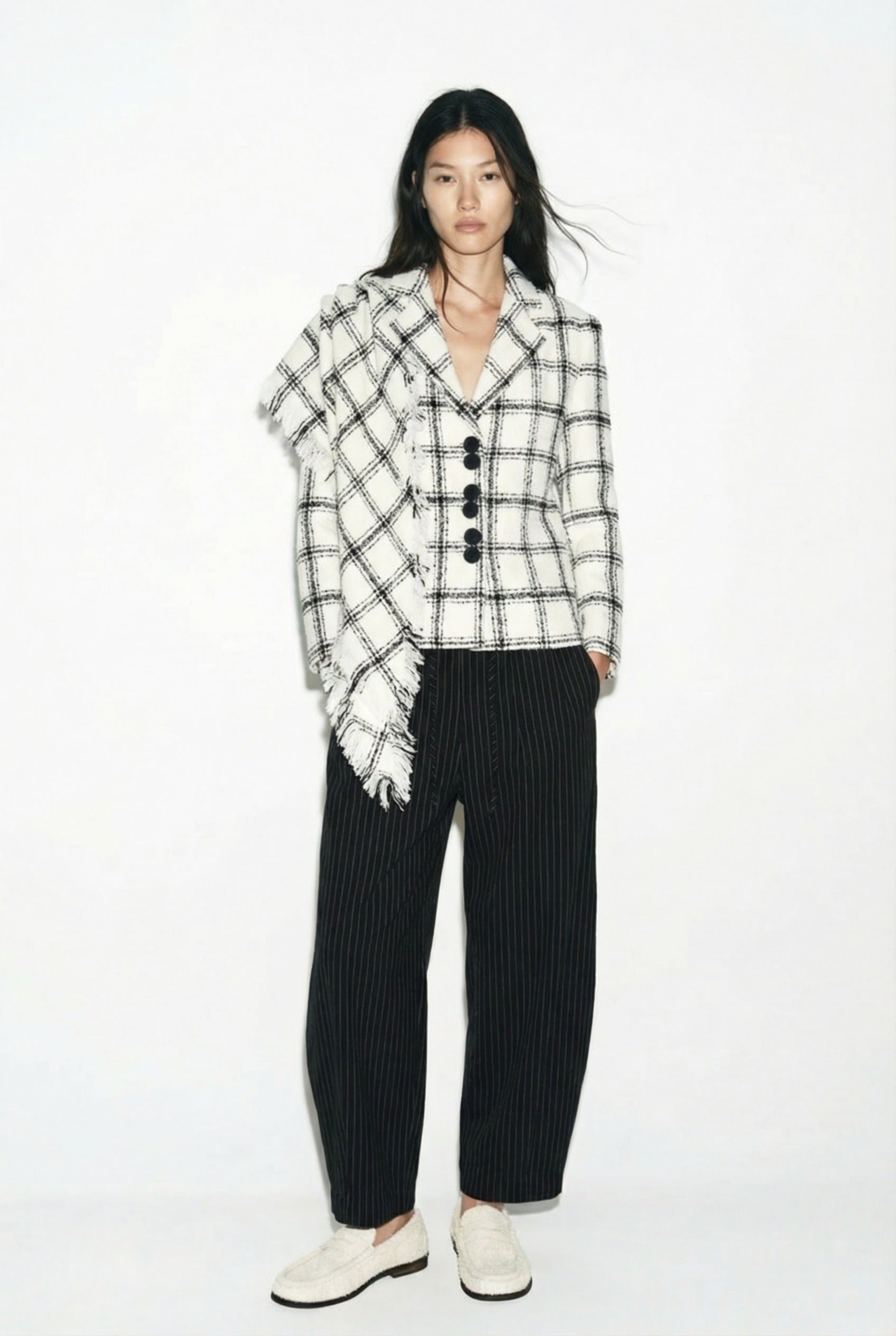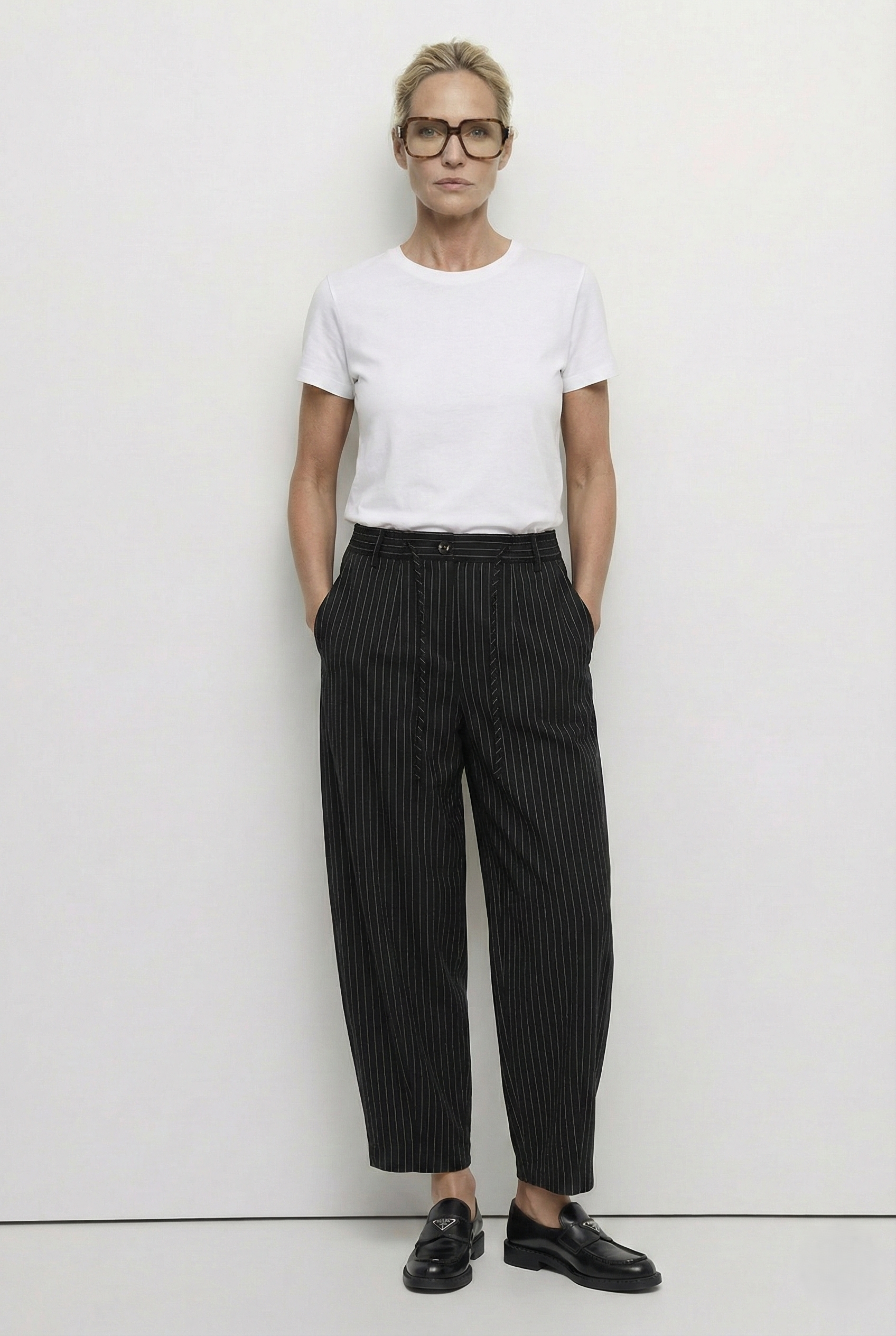 Geniş hacimli formu ve çizgili dokusuyla dikkat çeken bu pantolon, şehirli bir duruşla rahatlığı bir araya getirir. Organik pamuk karışımlı kumaşı sayesinde nefes alabilir yapıdadır ve hafif dokusuyla gün boyu konfor sağlar. Bel kısmındaki lastik ve fermuar detayı hem konfor hem de pratik kullanım sunarken, arkadaki cep detayları sportif bir şıklık kazandırır. Günlük kombinlerde modern ve özgün bir alternatif oluşturur.