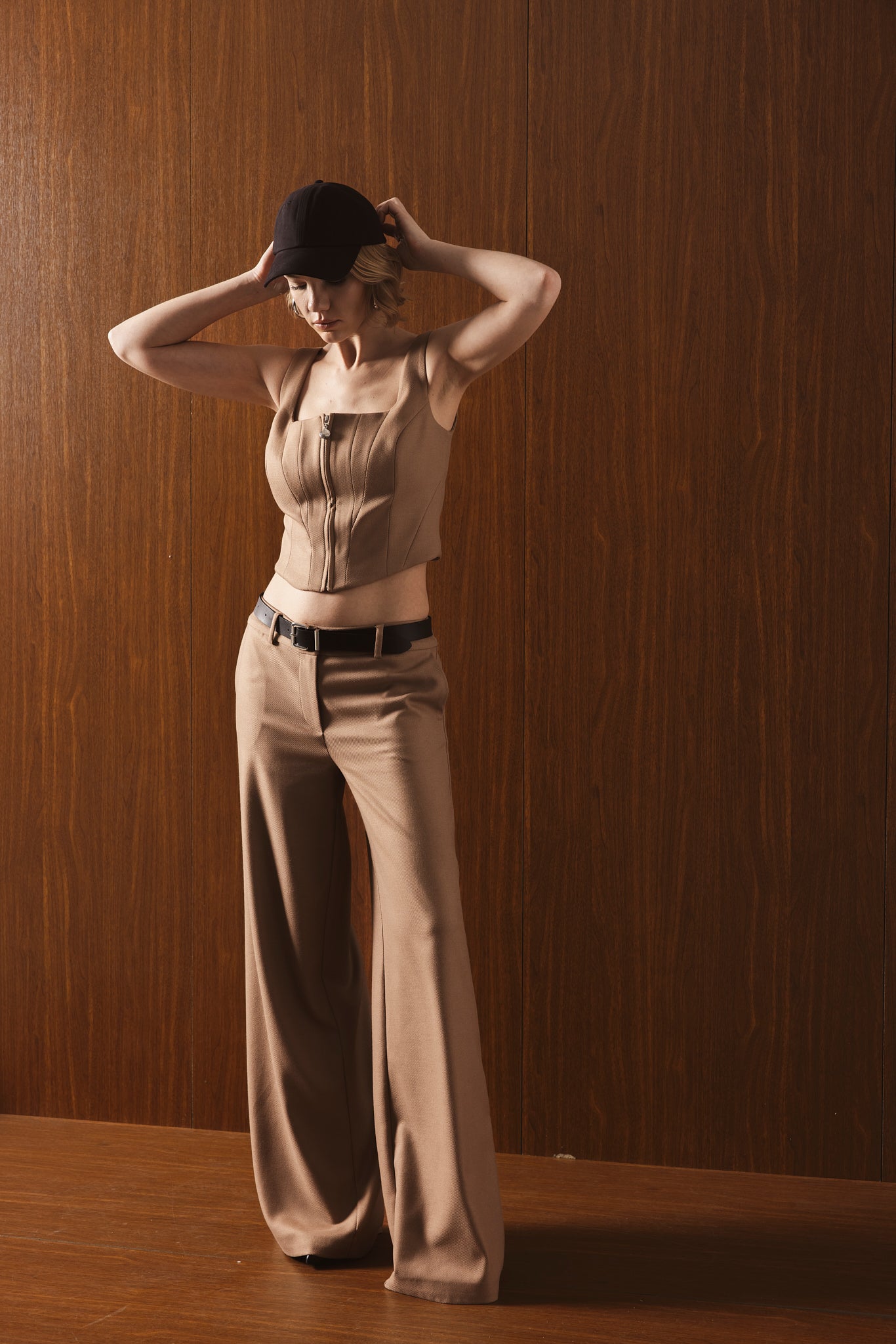 Modern kesimi ve zarif çizgileriyle dikkat çeken Vivian Pantolon şıklık ve rahatlığı bir araya getiriyor. Yüksek bel yapısı vücut hatlarını zarif bir şekilde vurgularken geniş paça bölümü ile hareket özgürlüğü sağlar. Kumaşın esnek yapısı konforlu bir kullanım sunar ve gün boyu şıklığınızı korumanıza yardımcı olur. Hem iş hem de günlük giyimde kombinlenebilecek çok yönlü bir parçadır.