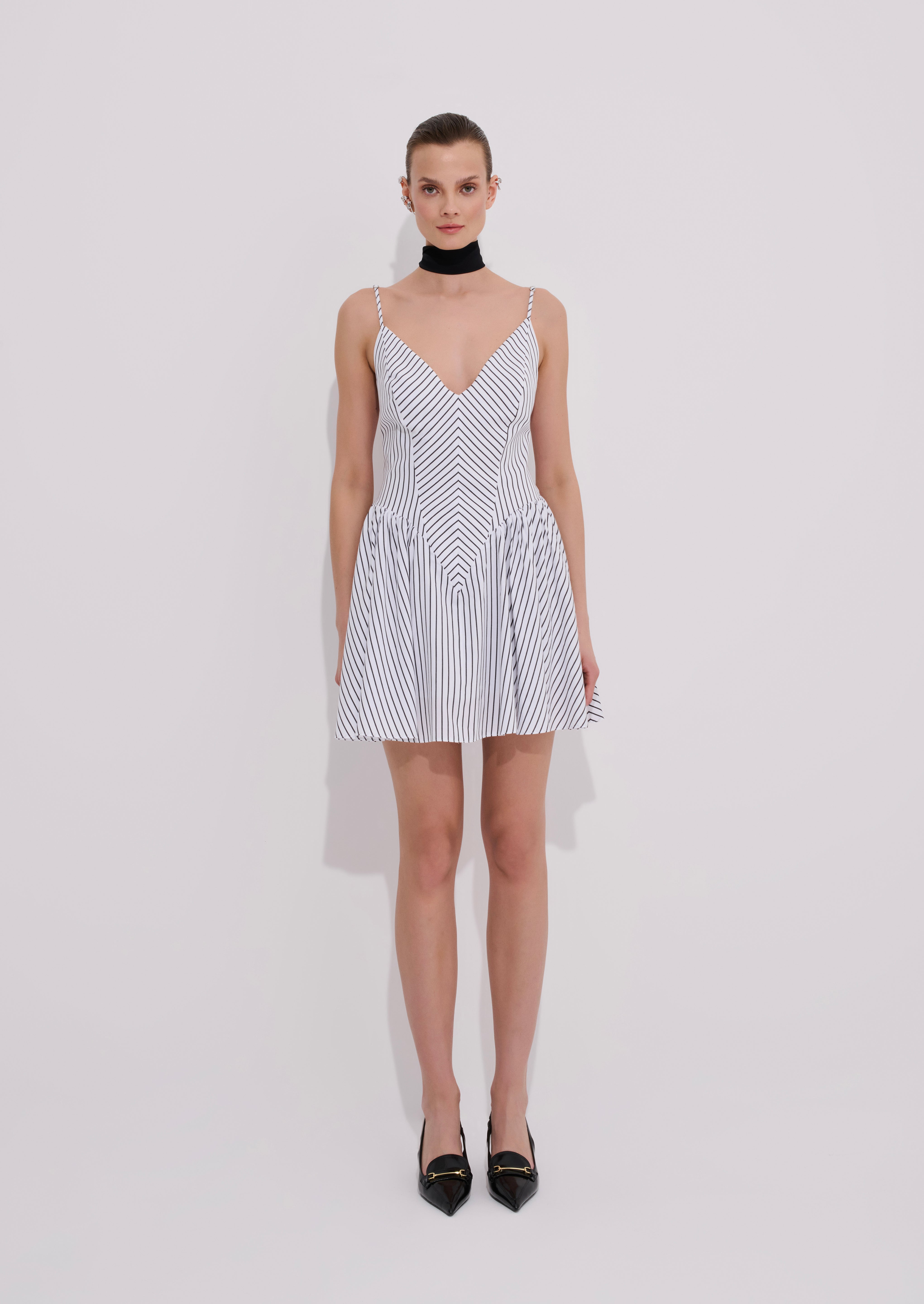 Dinamik ve feminen çizgilerle tasarlanmış bu kısa elbise ince askıları ve derin V yakasıyla yaz stiline zarif bir dokunuş katar. Bel ve göğüs kısmı saran oturmalı kilo sayesinde rahat uyum sağlarken ürün