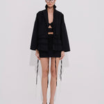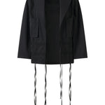 • Ön cep ve etek hizasında uzun bağcık detayları
