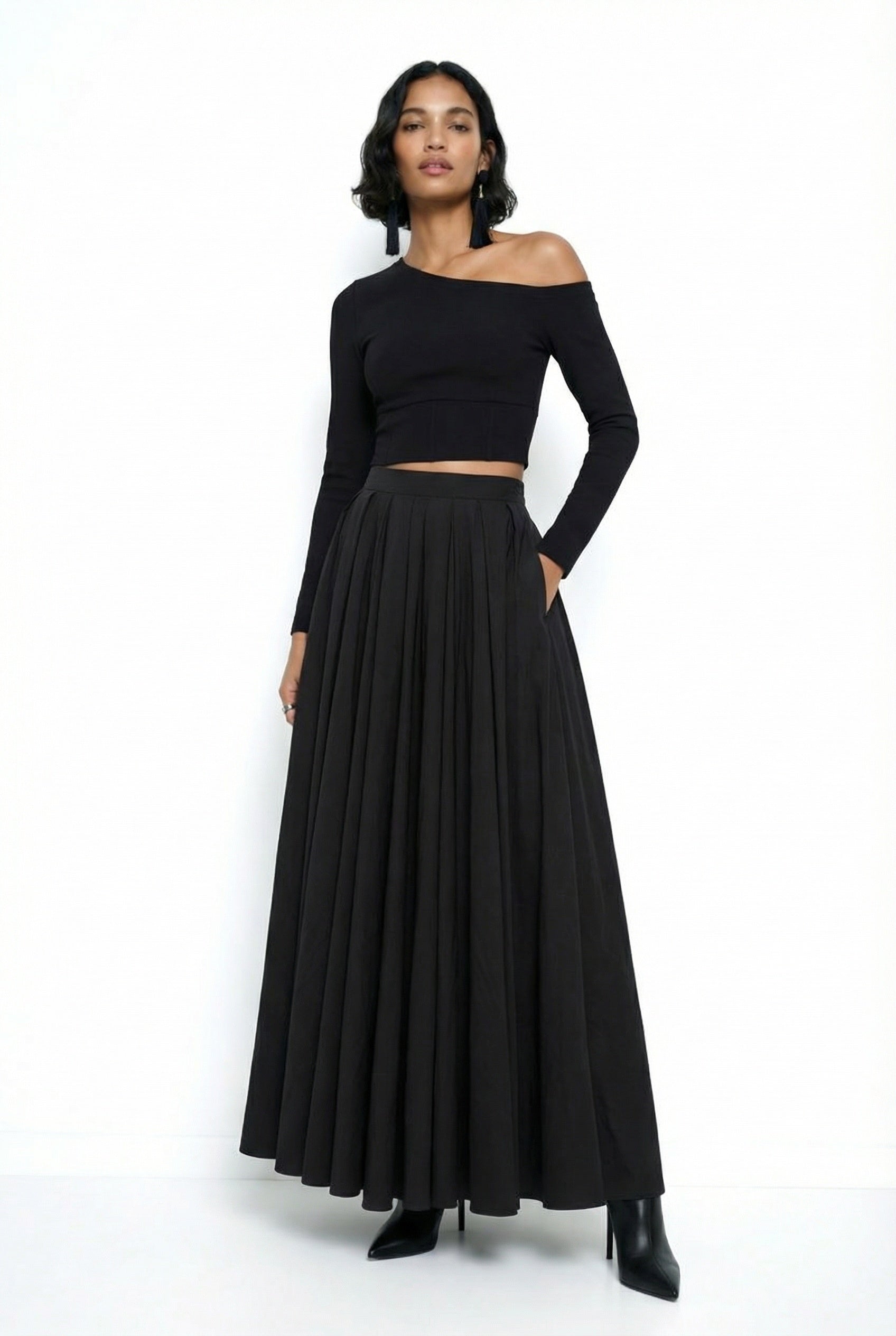 360 derecelik dökümlü siluet ve hafif paraşüt dokusuyla dramatik bir akış sağlayan Skyloop Uzun Etek, modern kumaş, dinamik bir durmayla birleştirir. Geniş tüy yapısı hareket ederek etkileyici bir hacim yaratır. Bel kısmında yer alan metal fermuar kusursuz bir form ve rahat kullanım sağlar. Sezonun güçlü ve iddialı parçalarından biri olan tasarım, tarzınızı özgün ve anlatılabilir bir ifadeyle öne çıkarır. İsteğe bağlı kemer kullanımıyla farklı örtü ve yürüyüş etkinlikleri yaratılabilir, şehir stilinden davet görünümlerine genişleyen geniş bir kullanım alanı sunar