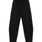 Geniş hacimli formu ve çizgili dokusuyla dikkat çeken bu pantolon, şehirli bir duruşla rahatlığı bir araya getirir. Organik pamuk karışımlı kumaşı sayesinde nefes alabilir yapıdadır ve hafif dokusuyla gün boyu konfor sağlar. Bel kısmındaki lastik ve fermuar detayı hem konfor hem de pratik kullanım sunarken, arkadaki cep detayları sportif bir şıklık kazandırır. Günlük kombinlerde modern ve özgün bir alternatif oluşturur.